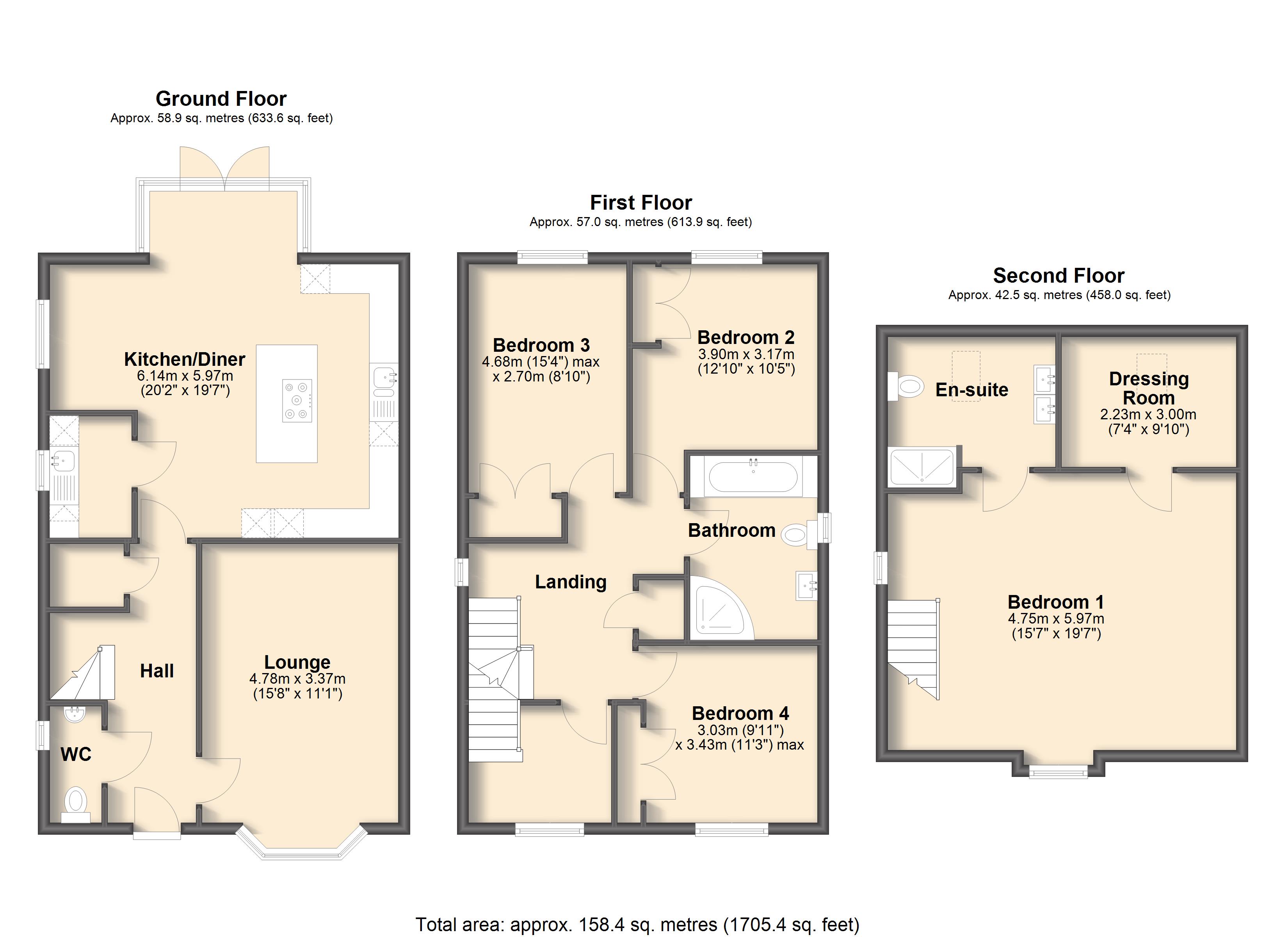 Moving to the upper floors, the principal bedroom is complete with its own en-suite shower room and a generous dressing room, providing both luxury and privacy. Three further well-proportioned bedrooms offer flexibility for growing families or those in need of dedicated home office space. The family bathroom is stylishly finished, featuring a separate corner shower and a modern suite to cater to all needs. Additional highlights include the remainder of the NHBC guarantee, ensuring peace of mind for years to come.