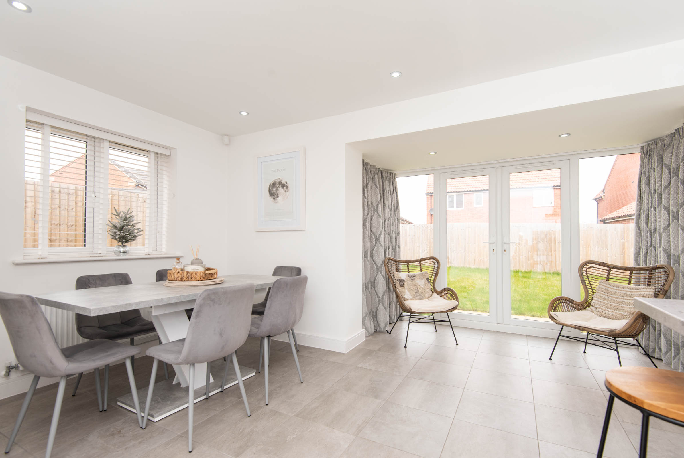 Upon entering, you are welcomed by a spacious bay window lounge, providing a bright and inviting space. The heart of the home is the impressive open plan kitchen and dining area, which boasts a range of sleek, modern fitted units, integrated appliances, and ample workspace, making it perfect for family meals and social gatherings. Adjoining the kitchen, a practical utility room offers additional storage and laundry facilities, while convenient patio doors provide a seamless indoor/outdoor flow. The ground floor also features a well-appointed downstairs W.C.