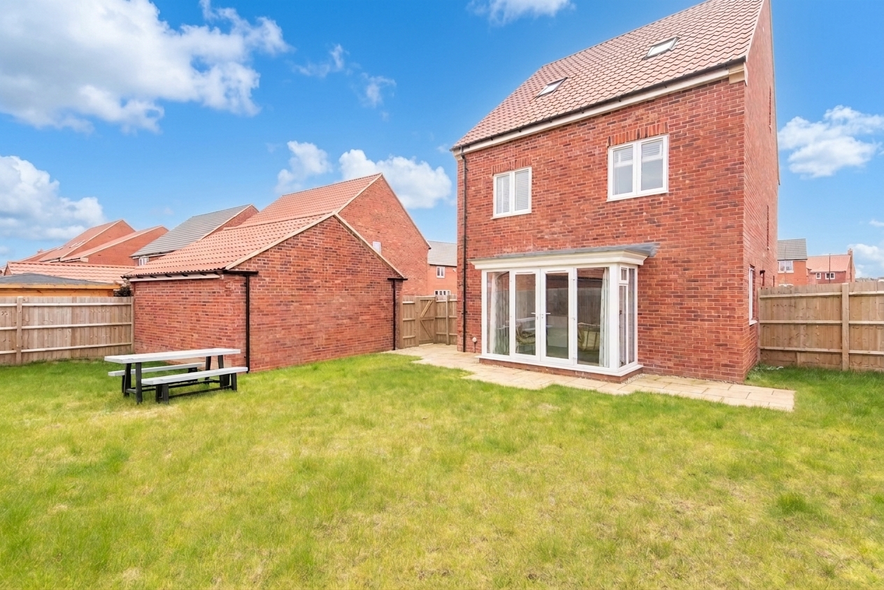 To the rear the low maintenance enclosed garden provides the perfect spot for children to play and adults to relax. Residents will also appreciate the ample off-street parking provided by a double width driveway, as well as a detached double garage for secure vehicle storage or additional utility space.