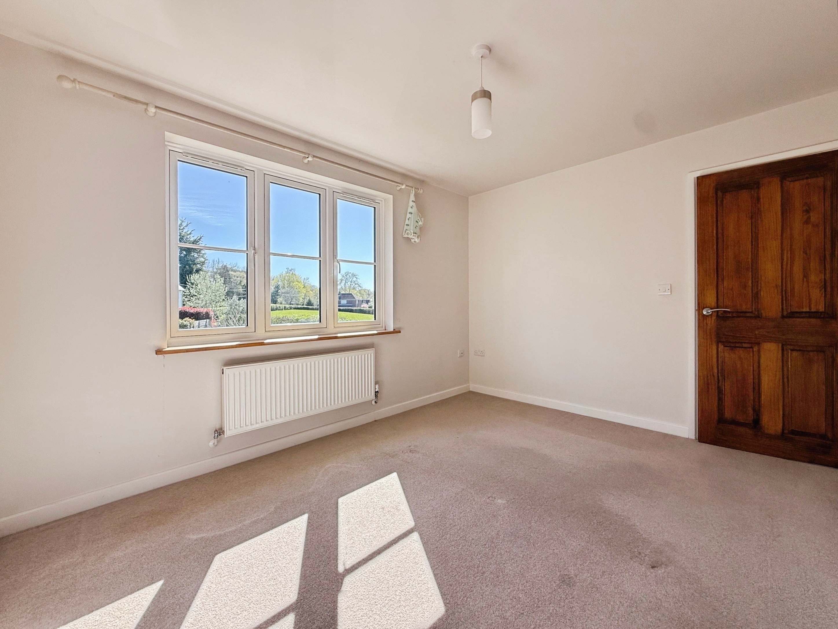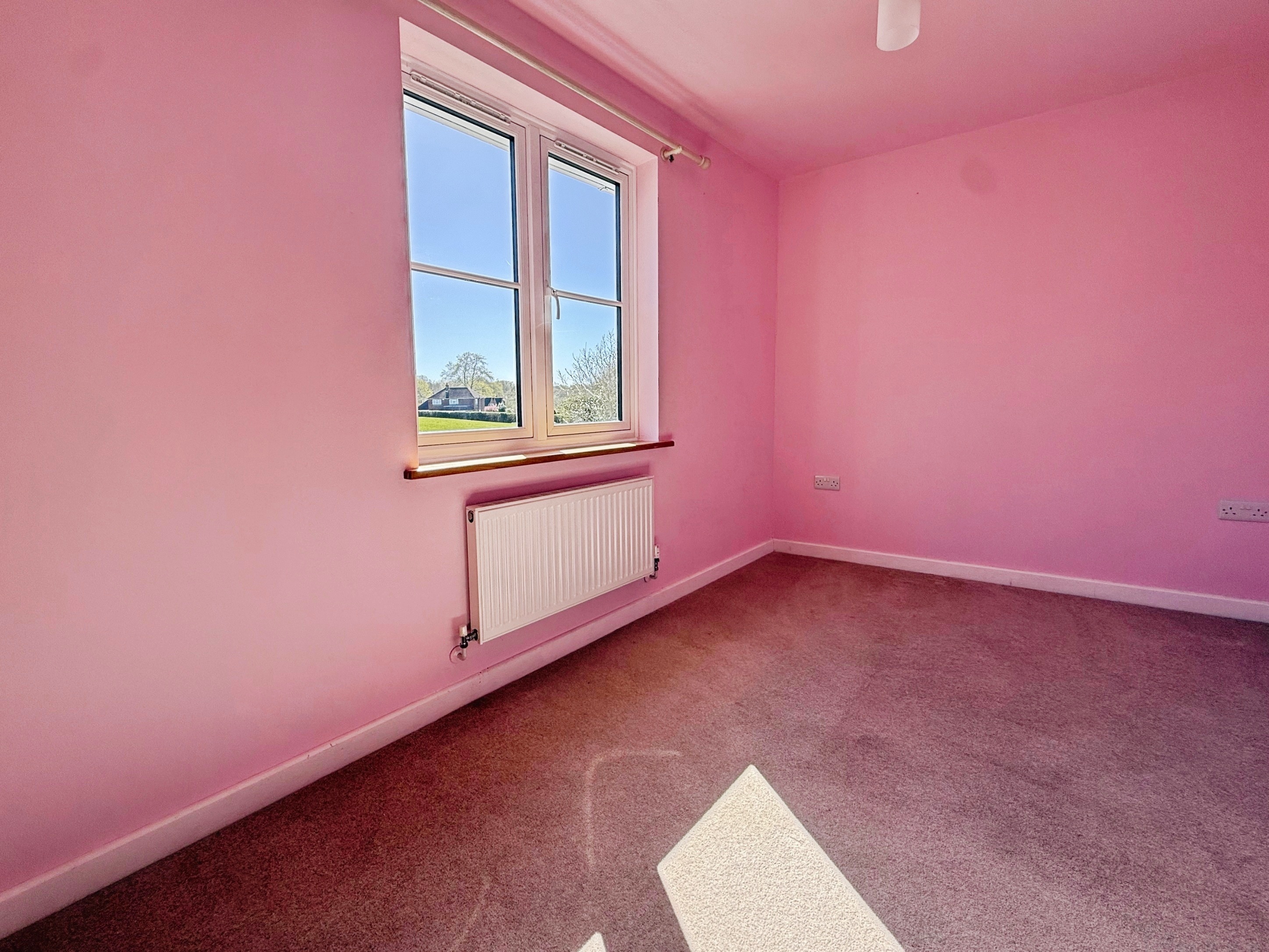 Carpeted, double glazed window to rear with views over fields, wardrobe with hanging rail and shelving, radiator.
