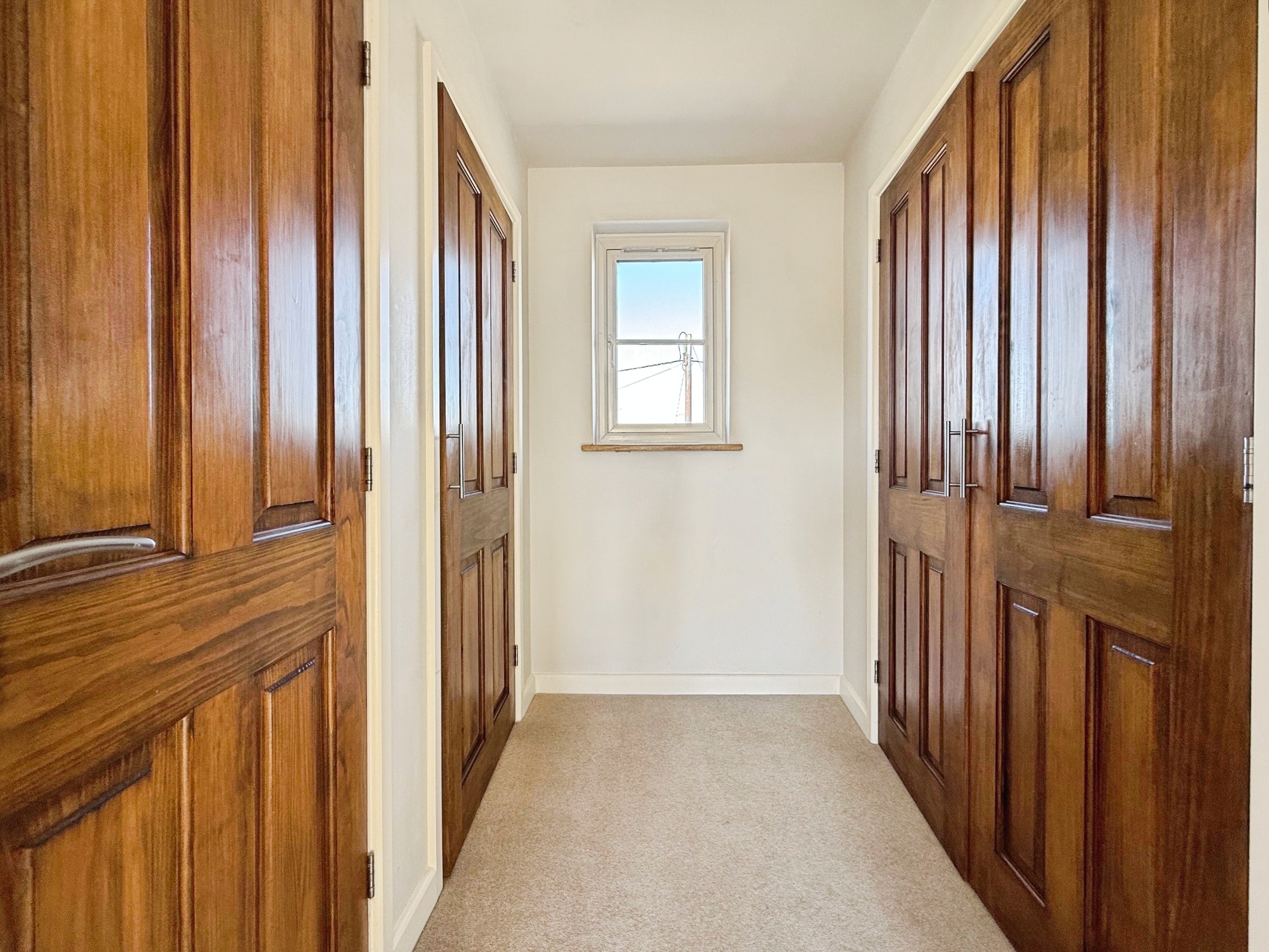 Carpeted, double glazed window to rear with views over fields, radiator. Access to: