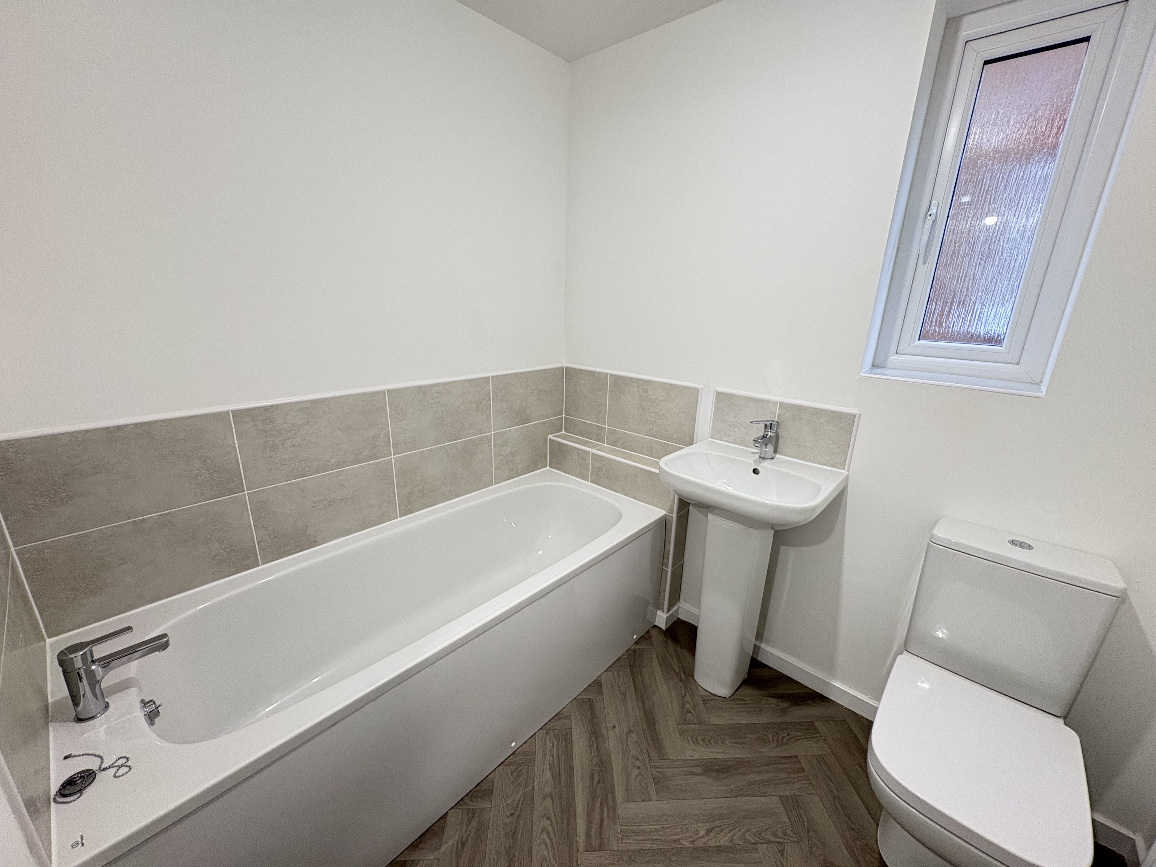 To the first floor are two double bedrooms and the family bathroom, complete with low-level hand basin, WC and bath.