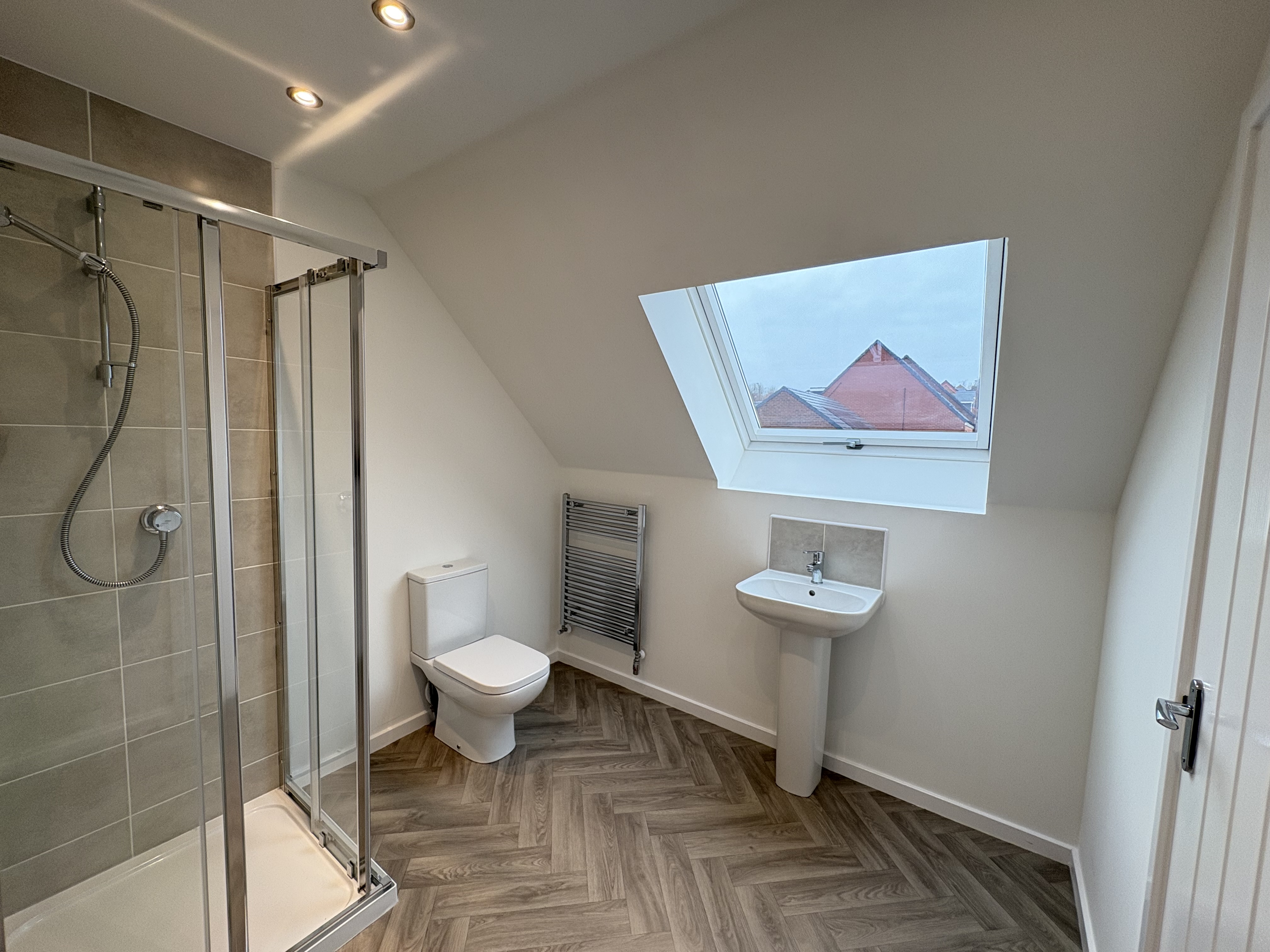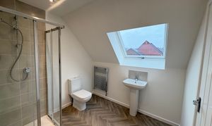 The third floor hosts a large double bedroom with en-suite, fitted with WC, low-level hand basin and shower cubicle.