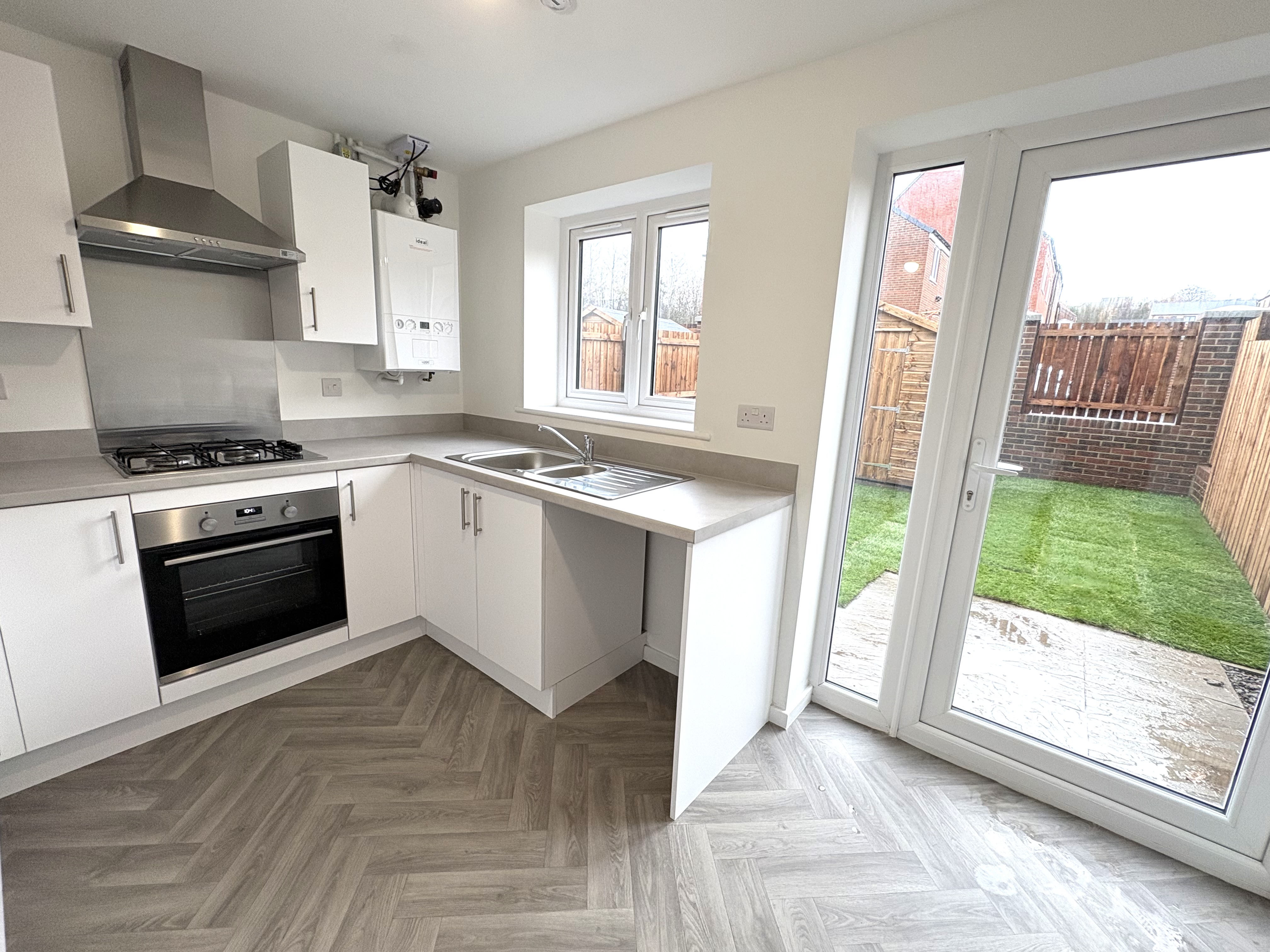 The new build comprises an entrance vestibule and a spacious living room leading through to the fitted kitchen, which includes wall and floor units, a built-in electric oven, gas hob with space for any additional white goods.