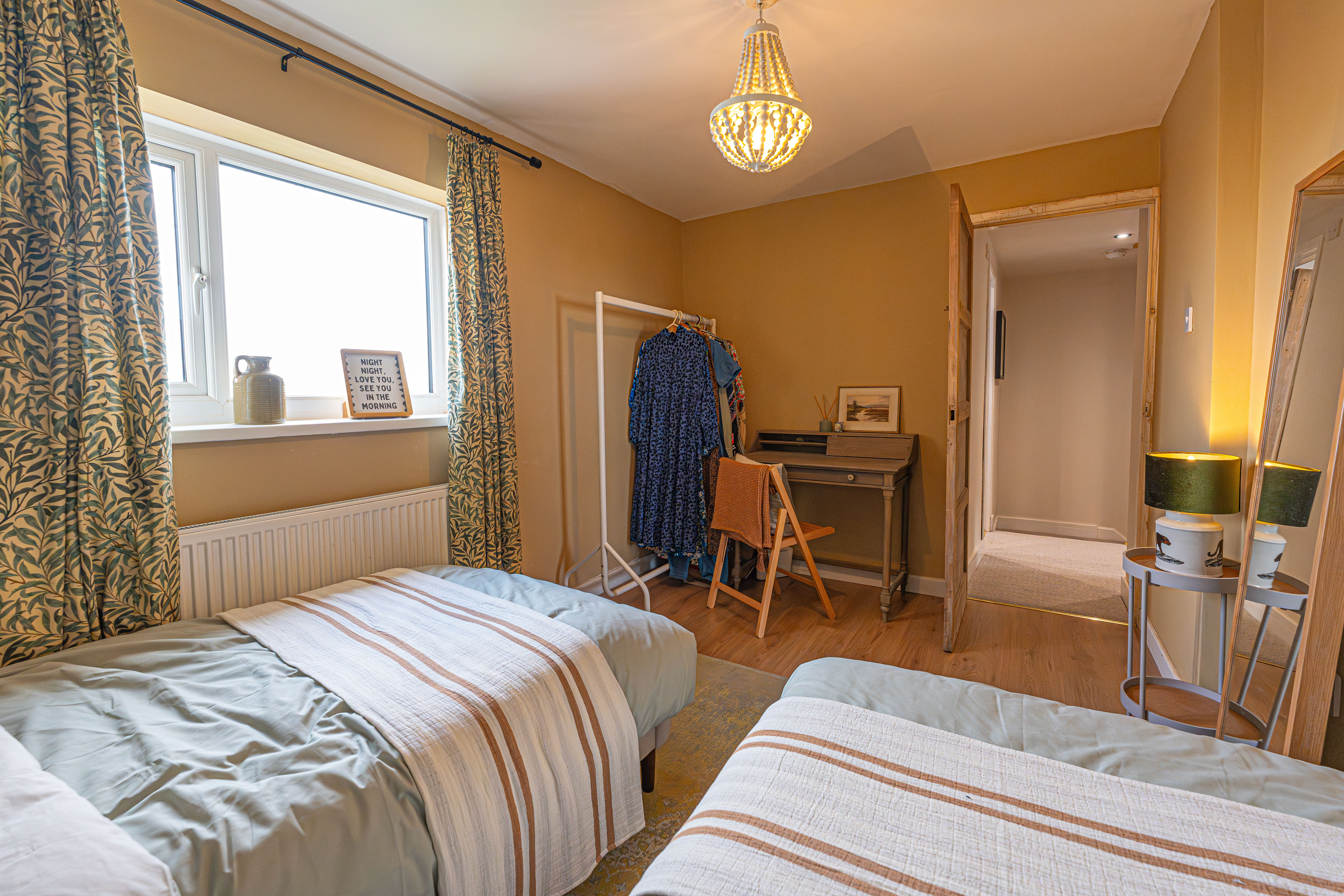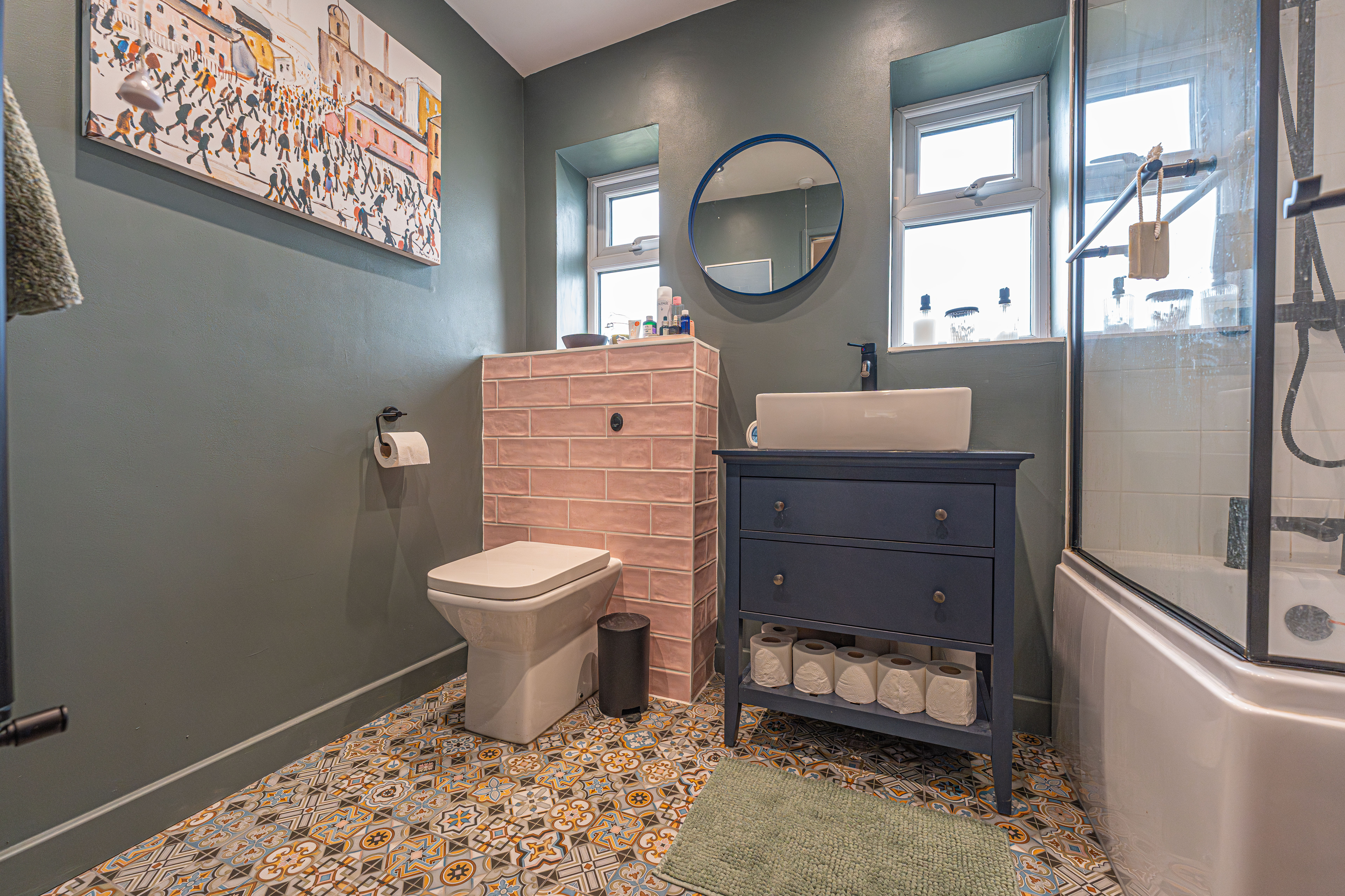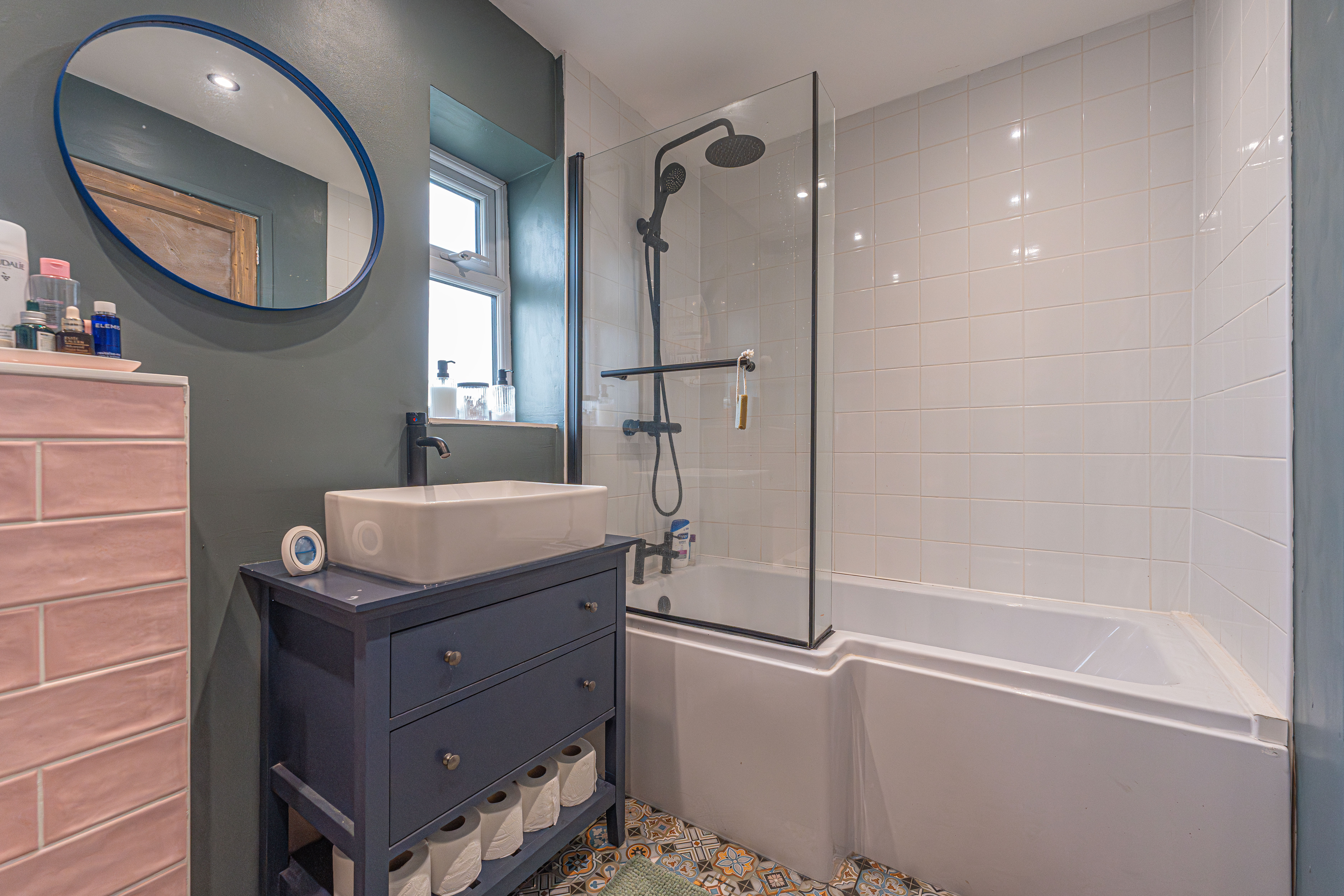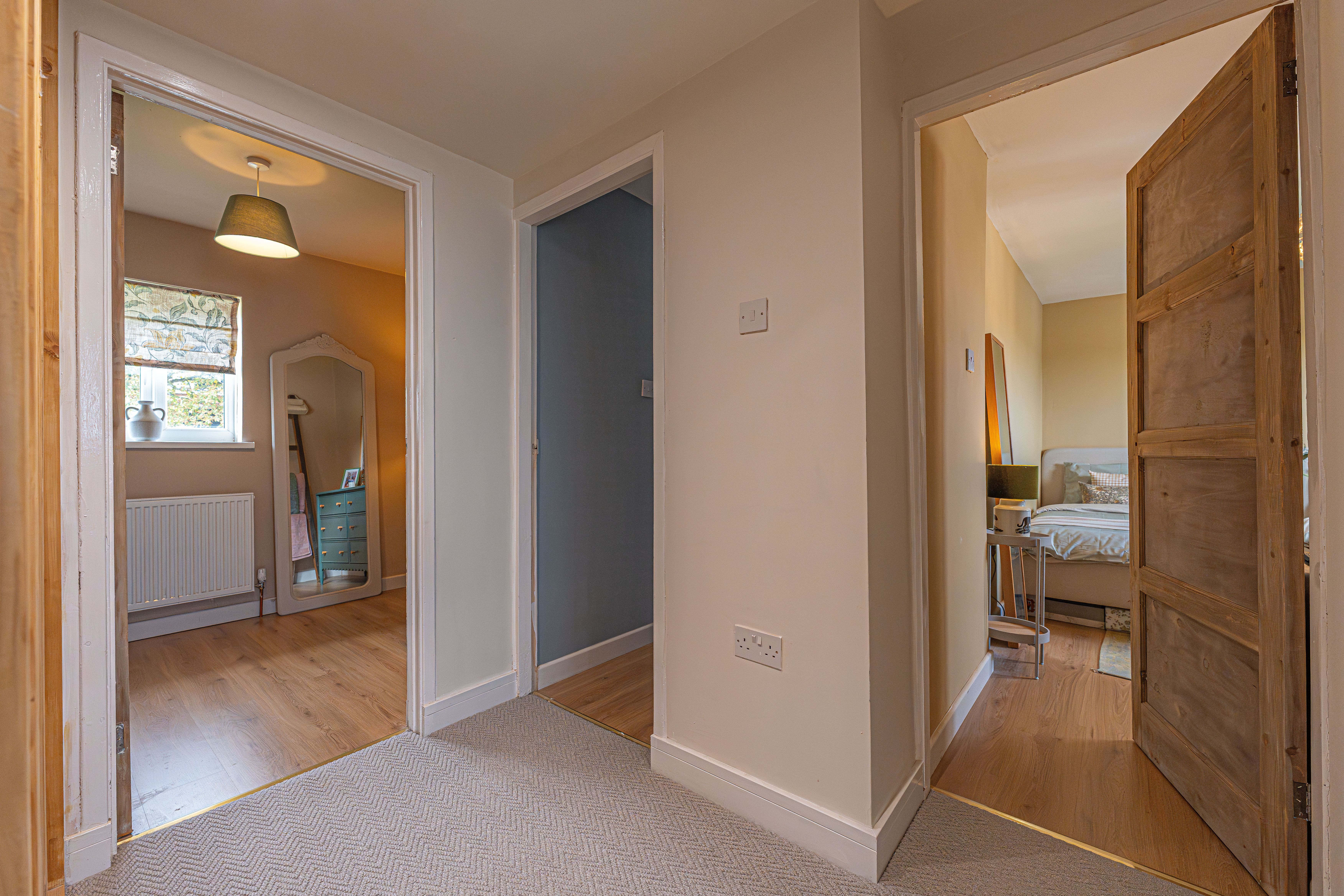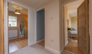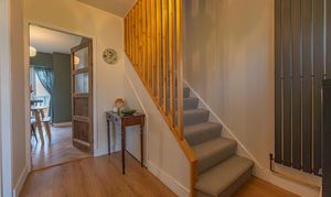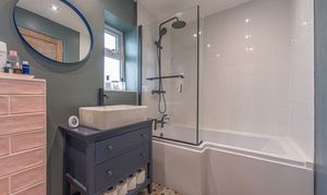 To the first floor we have three bedrooms, two of which are well sized double rooms and a third single room, with the latter being equipped with multiple built in wardrobes, making this well suited for a dressing room or alternatively a useful office space for those who work from home. The sleek bathroom has also been newly installed, and can be found from the first floor hallway with a bath suite and mixer/rainfall shower.