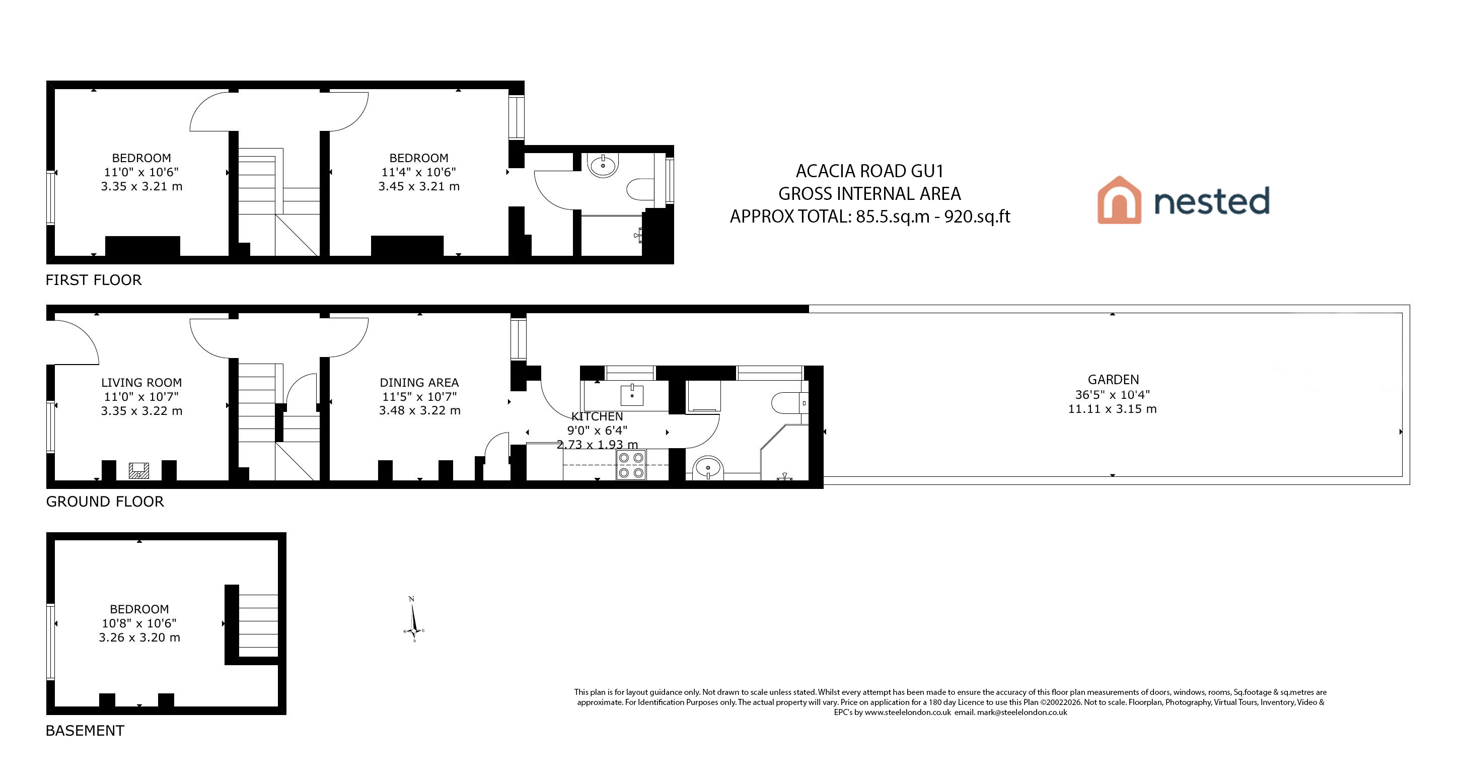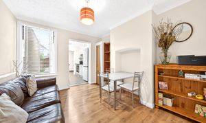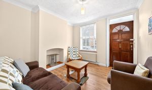 Situated in a residential road in Guildford, this three-bedroom home provides accommodation arranged over three floors, extending to approximately 920 sq ft.