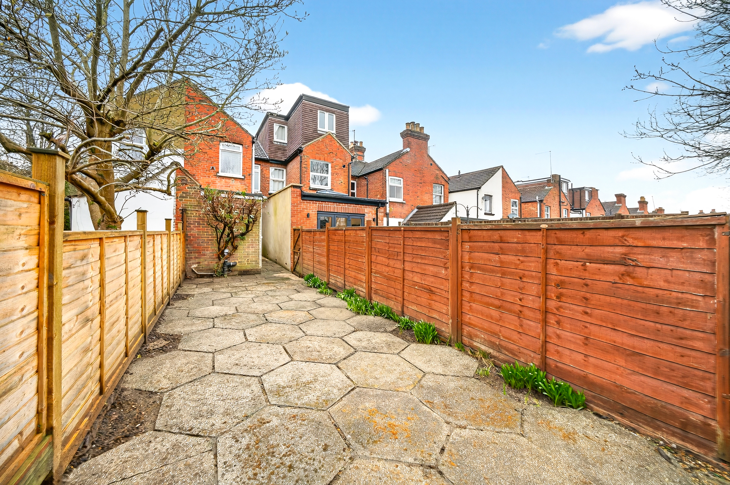To the rear, there is a private garden which benefits from an easement of access (right of way), providing side access.