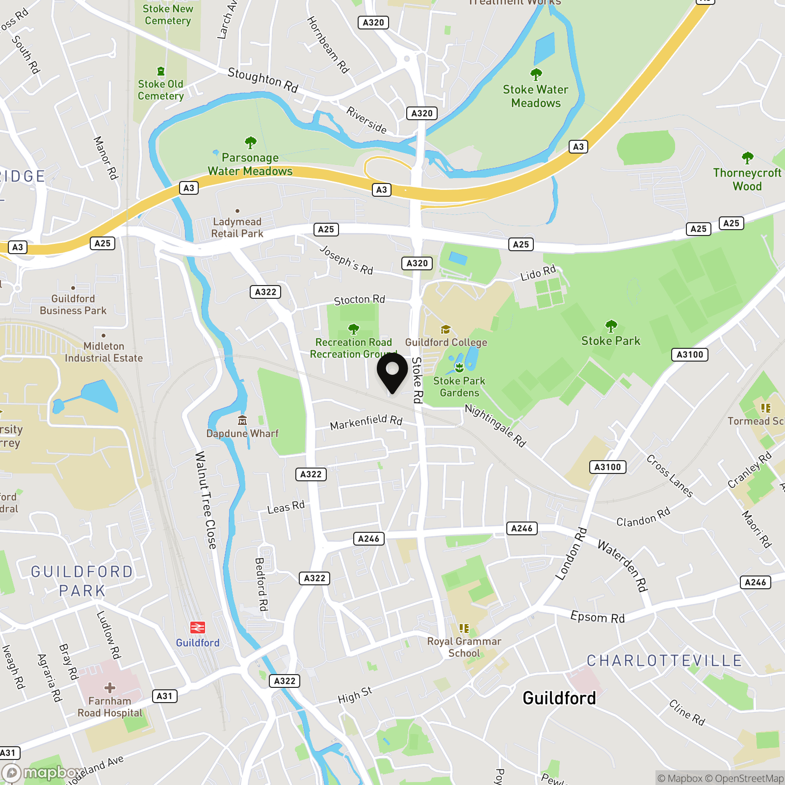 The property is well positioned for access to local amenities. Both Stoke Recreation Ground and Stoke Park are within easy reach, offering open green space and sports facilities. Local shops and everyday conveniences are nearby, while Guildford town centre provides a broader range of shopping, dining and leisure options. Guildford mainline station offers services to London Waterloo, and regular bus routes serve the surrounding area.