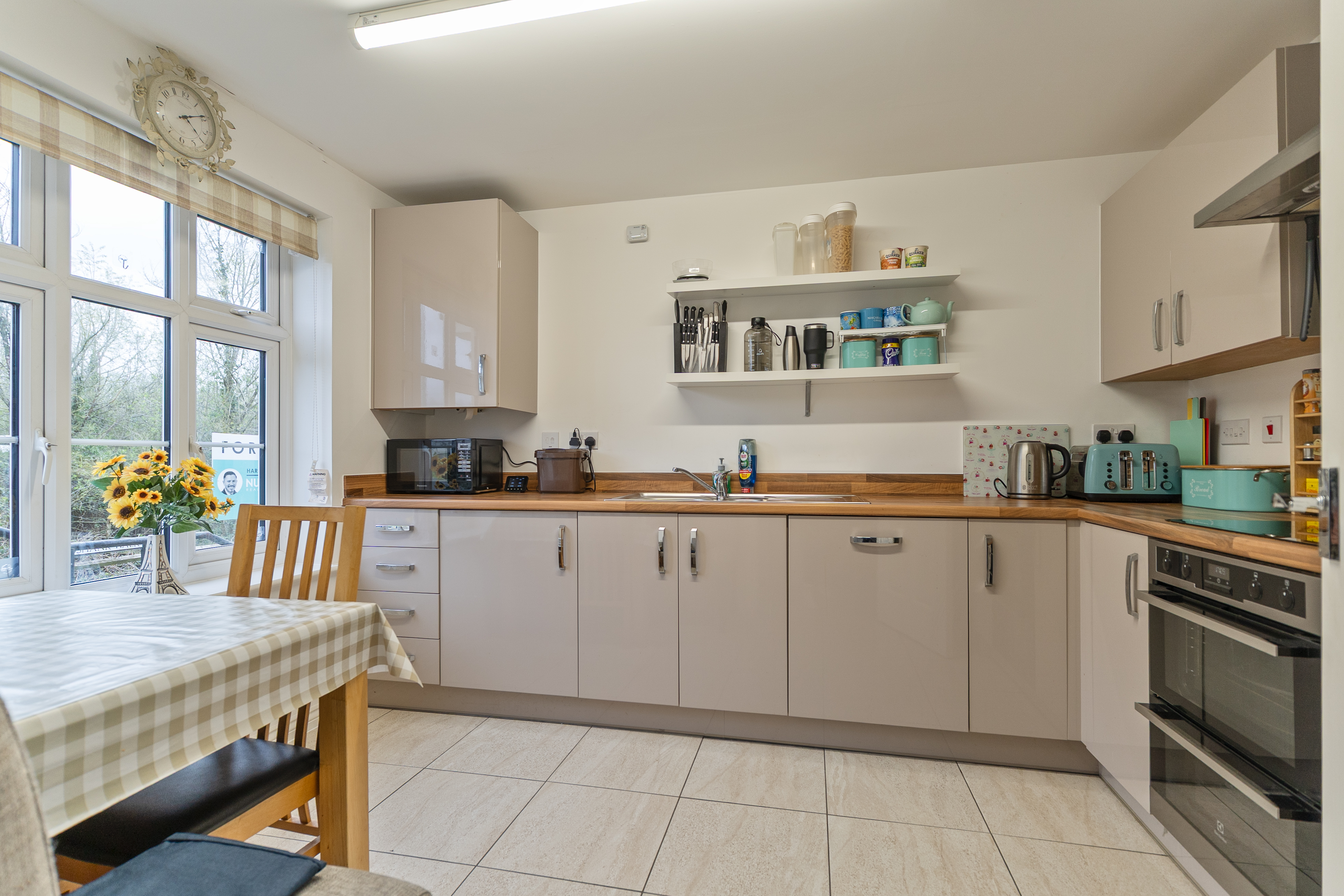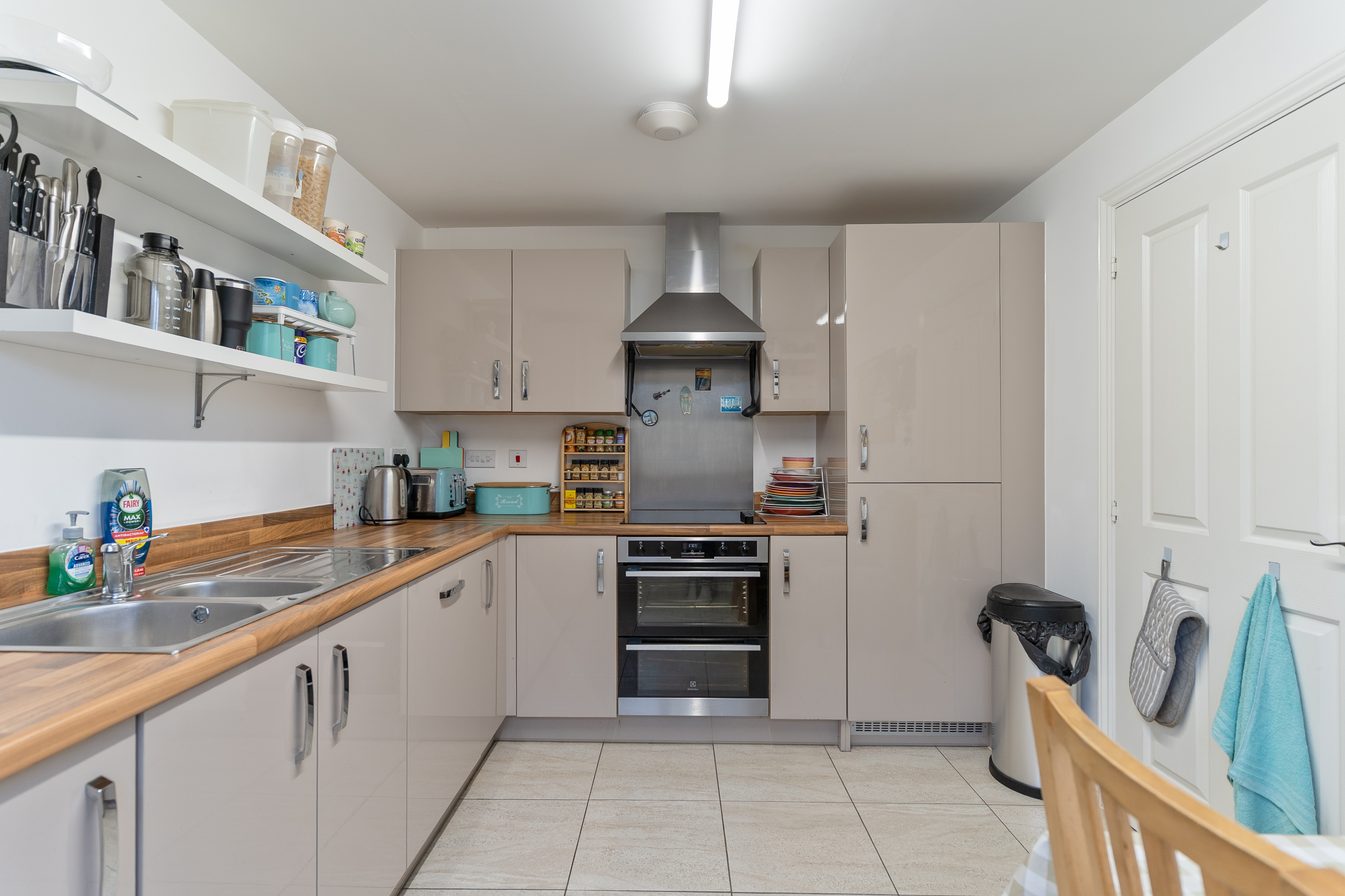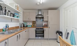 On the ground floor, the property offers a highly versatile layout. To the rear is an incredibly spacious living room, providing ample room for a variety of seating arrangements as well as a dining area. The space benefits from multiple windows and double doors opening out to the rear garden, allowing plenty of natural light to flood in. There is also a fitted storage cupboard within the room for added practicality. To the front of the property is the spacious kitchen, offering excellent storage through fitted units and integrated appliances including a four-ring electric hob and oven, along with space for additional appliances. The kitchen is large enough to accommodate a dining area, adding further flexibility. From the hallway there is also a convenient cloakroom and a pull-out under-stairs storage cupboard, ideal for shoes and everyday items.