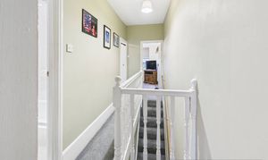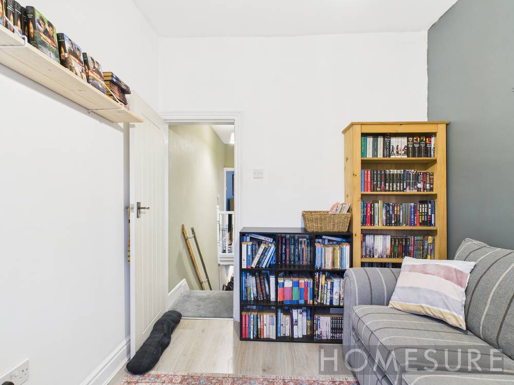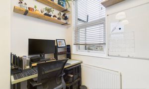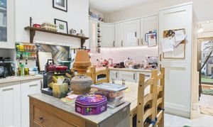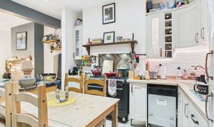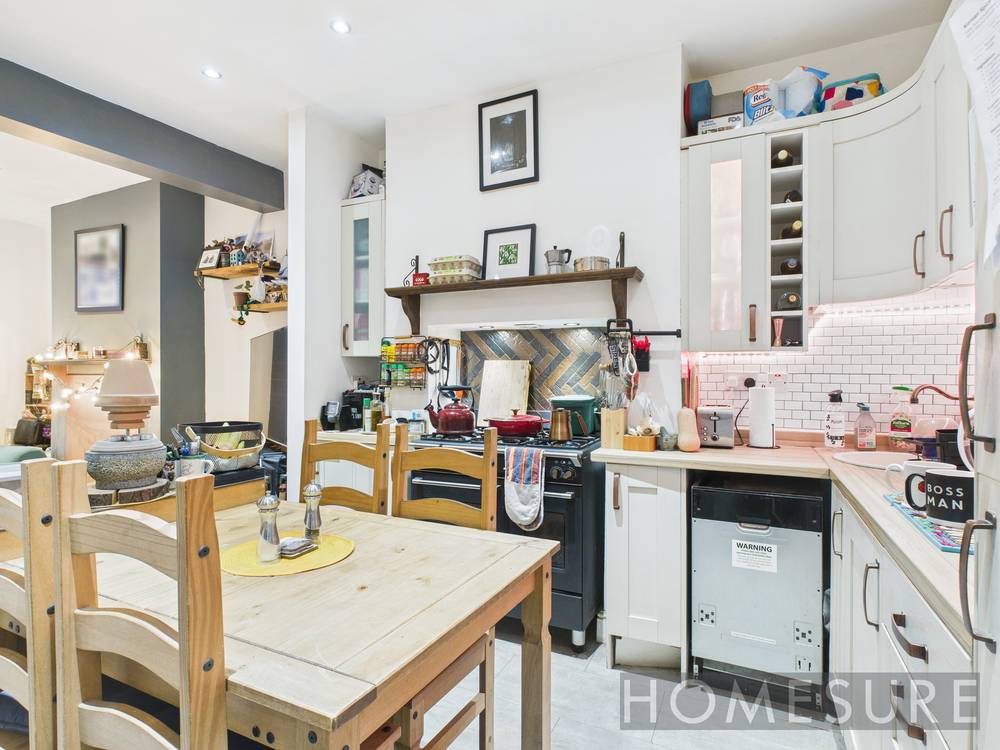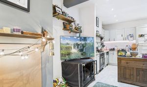 This chain-free, beautifully presented three-bedroom, one-bathroom mid-terraced house impresses with a blend of period character and contemporary style. The home opens with a spacious open-plan living and dining area, offering a bright, welcoming atmosphere, enhanced by modern recessed lighting & neutral décor. The cosy living room is ready for a new fireplace to be fitted, and flows seamlessly into the dining space. The modern kitchen is equipped with sleek integrated appliances, stylish cabinetry and a dedicated wine rack, making it ideal for both every-day living and entertaining guests. There is also an additional space towards the rear of the building that houses an abundance of storage, which could easily be turned into an office space or playroom.