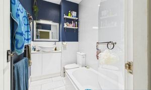 The property also boasts a contemporary bathroom with modern fixtures, a heated towel rail, and elegant tiles. Each of the three bedrooms are bathed in natural light, with built-in shelving and ample storage, while a thoughtfully arranged home office setup offers the perfect environment for remote work or study. Ample hallway space, built-in storage, and pet-friendly features add to the property's practicality and appeal, making it a standout choice for modern family living.