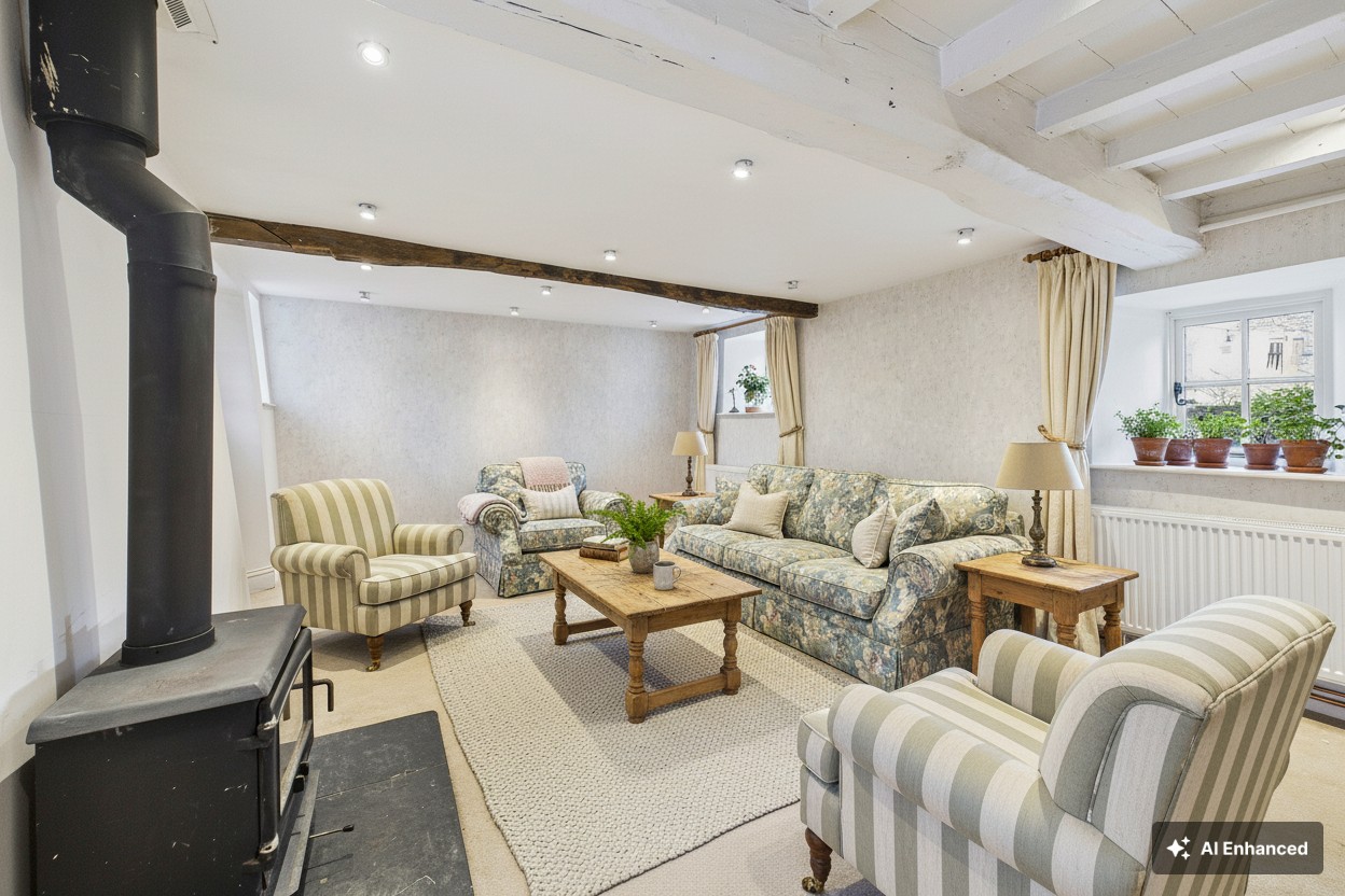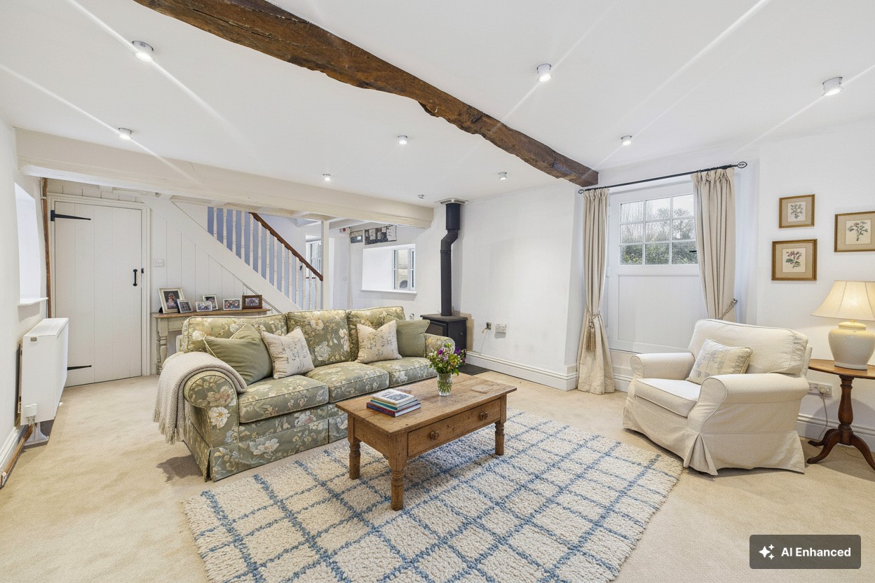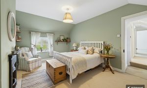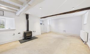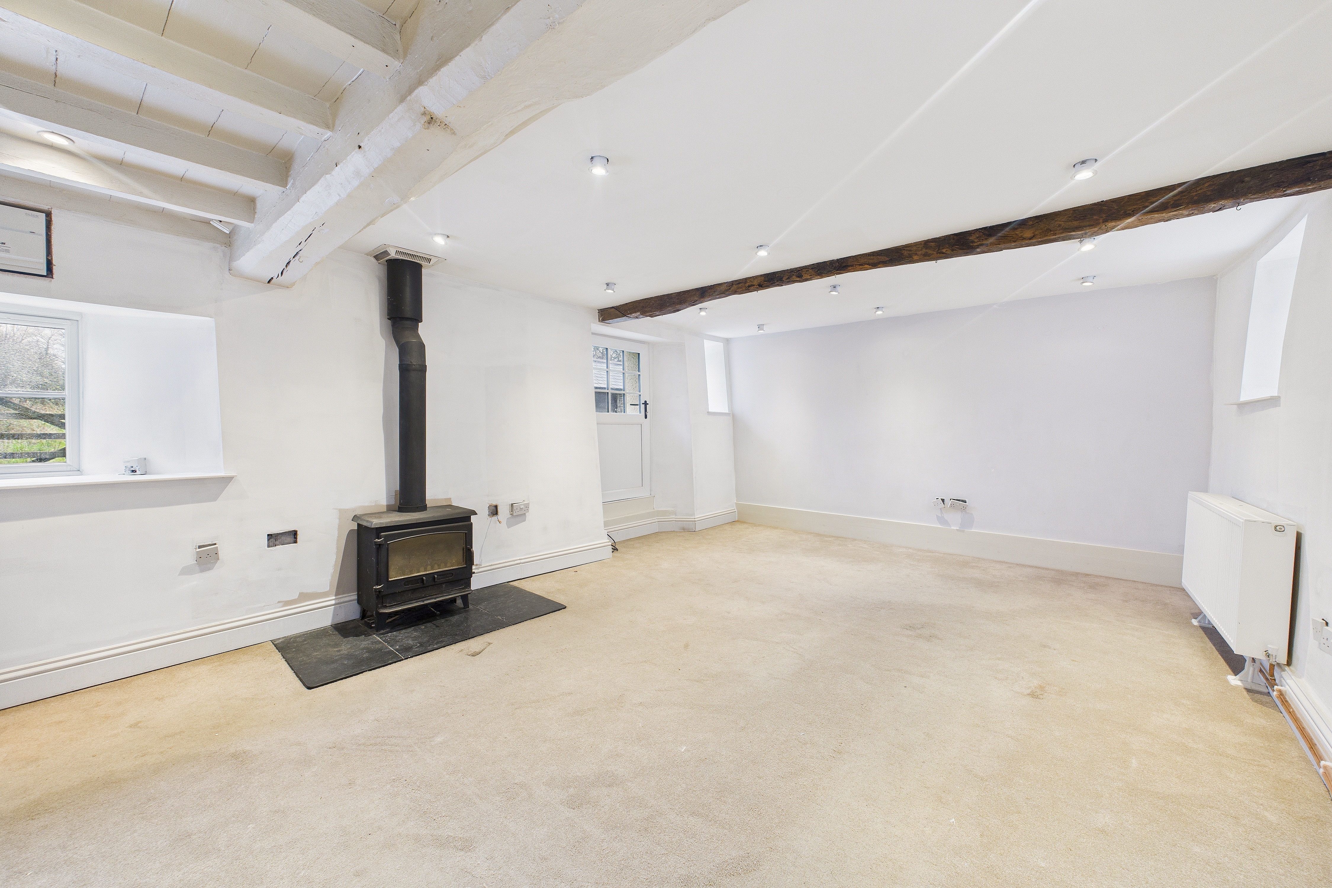 The lounge is a comfortable, spacious room, making it a natural place to settle in the evenings. The farmhouse-style kitchen sits at the front of the cottage and has a warm, practical layout with plenty of workspace and storage, an electric oven sits in the recessed chimney breast with feature beam. There is room for a dining table by the window, creating an easy link between cooking and eating spaces. From here, a door leads directly out to the garden.