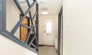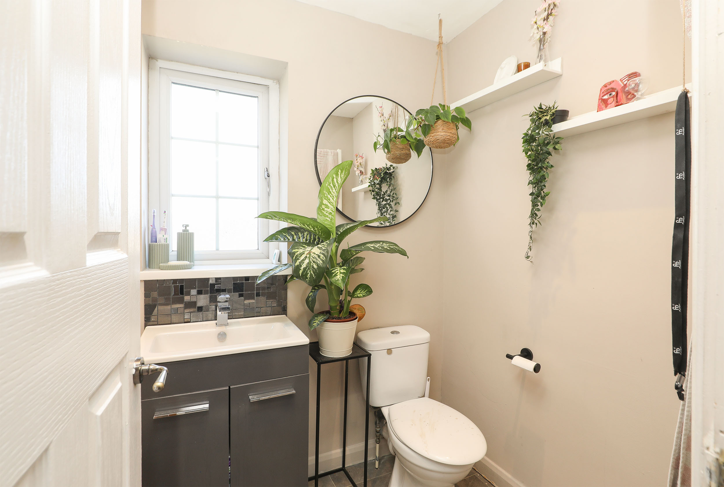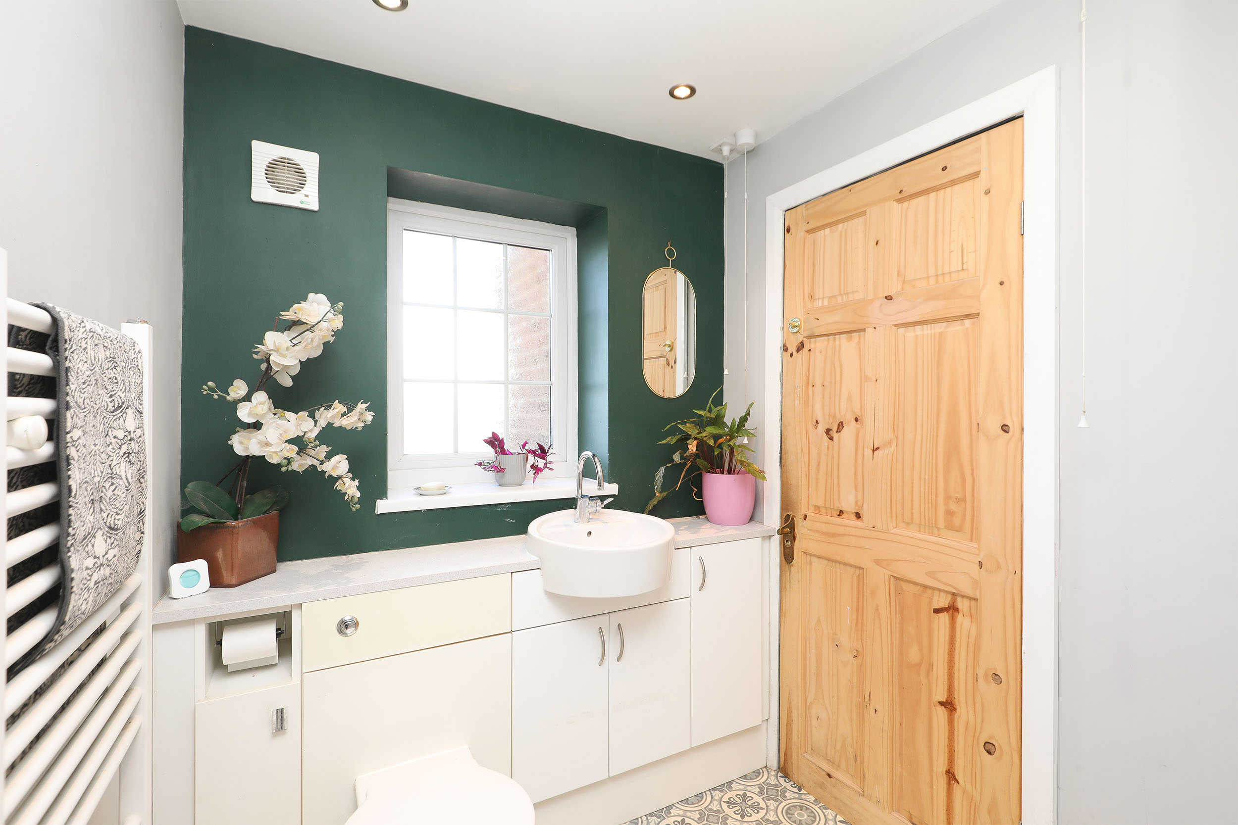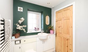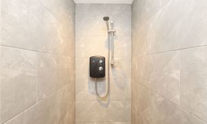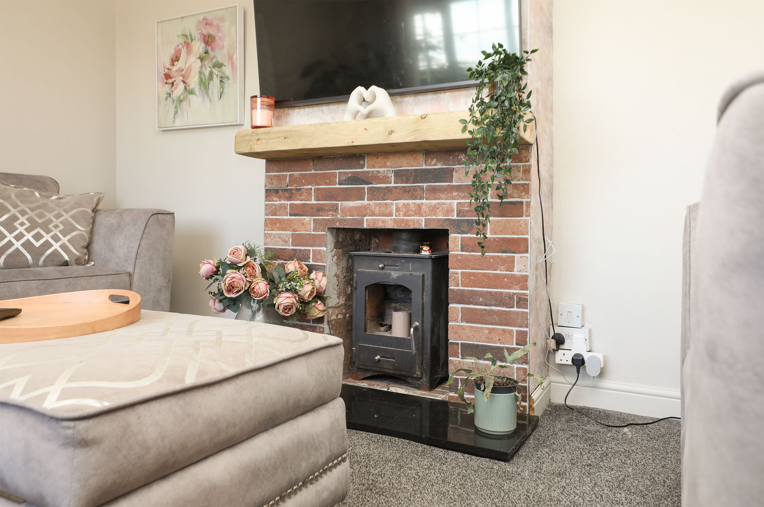 The light-filled living room features a log-burning stove for more relaxed evenings. The ground floor is further enhanced by a contemporary shower room, offering convenience.