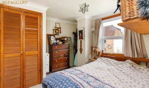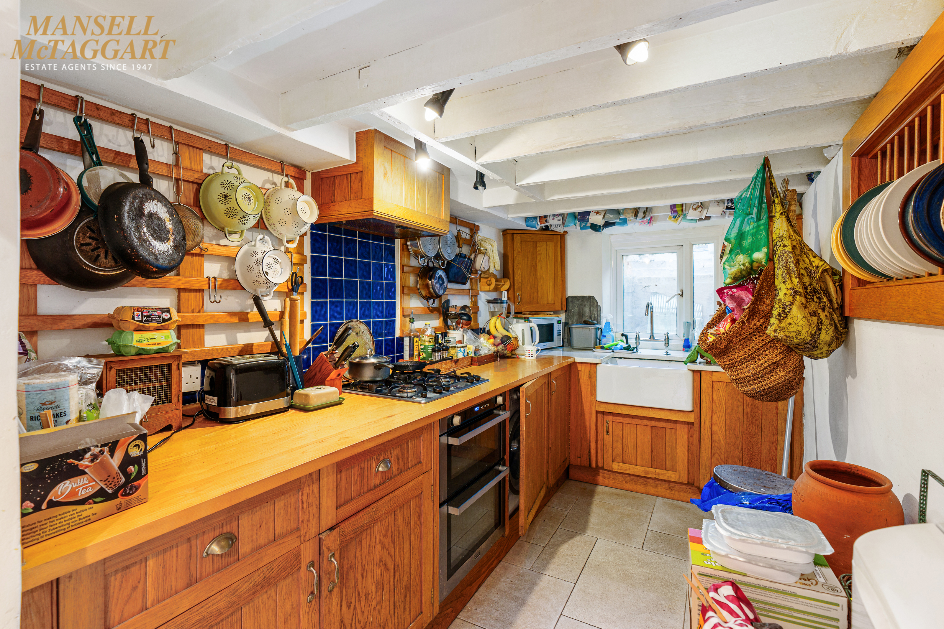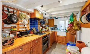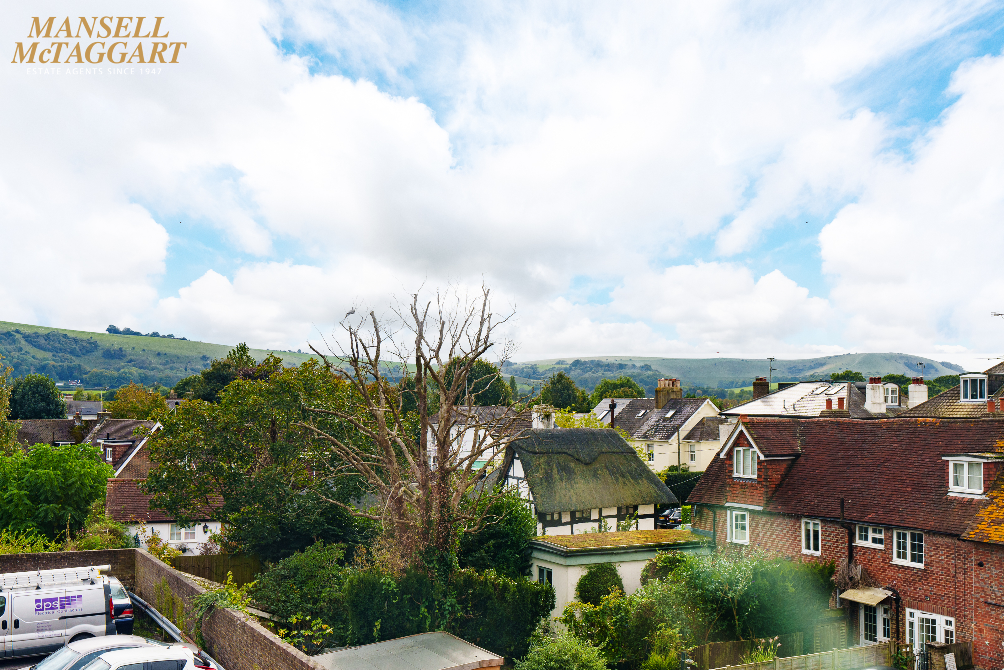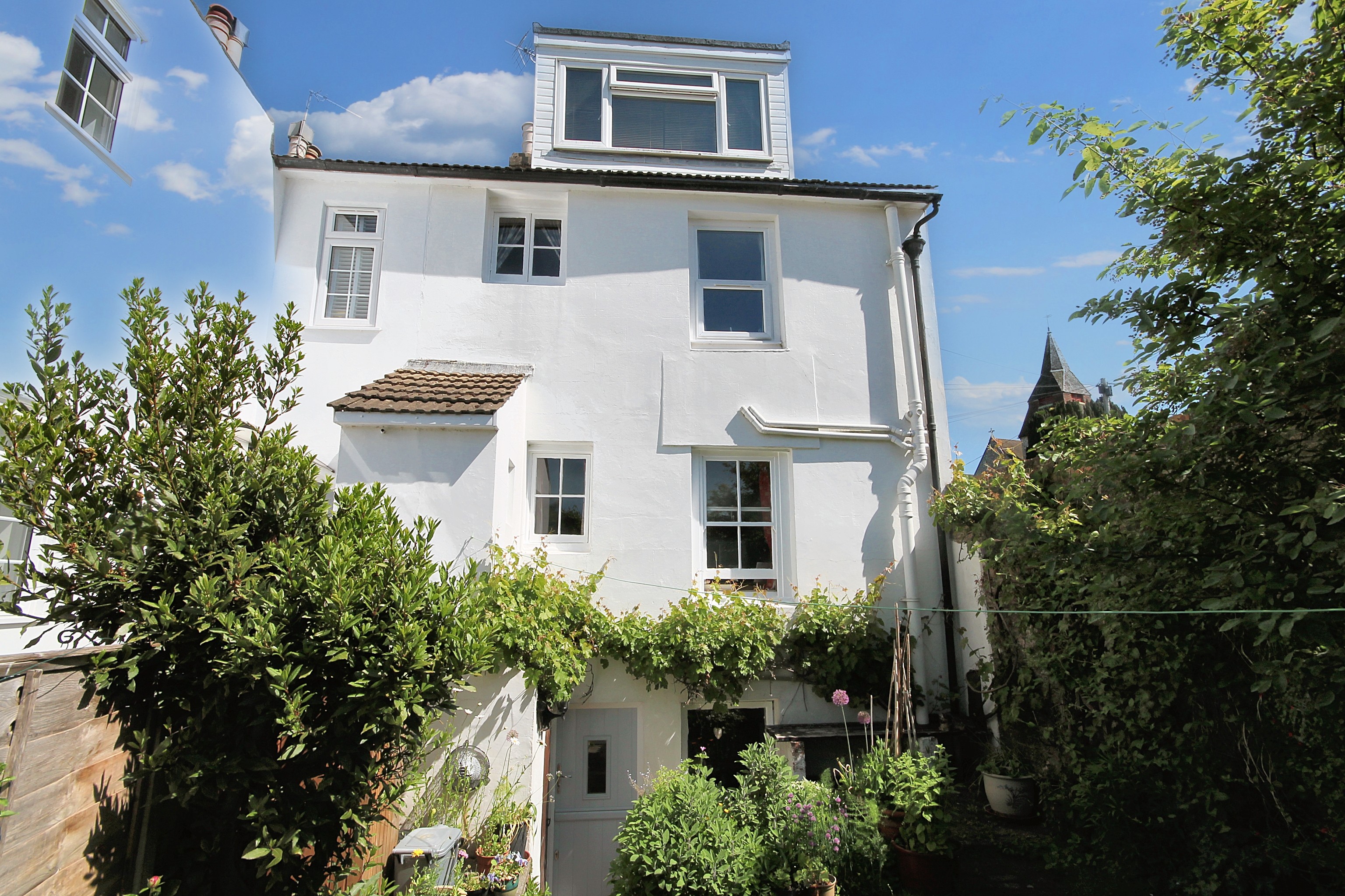 The accommodation is entered on the ground floor via an entrance porch leading into a large dual aspect living room with a heritage stove (decorative only) and open feature fire place and a WC. On the lower ground floor there is a good sized kitchen dining area. The fitted kitchen has a selection of base level units, a four ring gas hob and integrated oven with grill and overhead extractor. There is a storage cupboard housing space for a fridge freezer and a door leading to the rear garden. On the first floor there are two good size bedrooms, one with views to the south downs and a family bathroom with panelled bath, over head shower attachment, WC and wash hand basin. On the second floor there is a large master bedroom with built in cupboards and eaves storage space and again beautiful views to the south downs. Outside the south facing walled rear garden has a storage cupboard housing the Worcester combi boiler (New with 10 year guarantee), and steps leading up to a mainly lawned area with a selection of planted and tree lined borders.