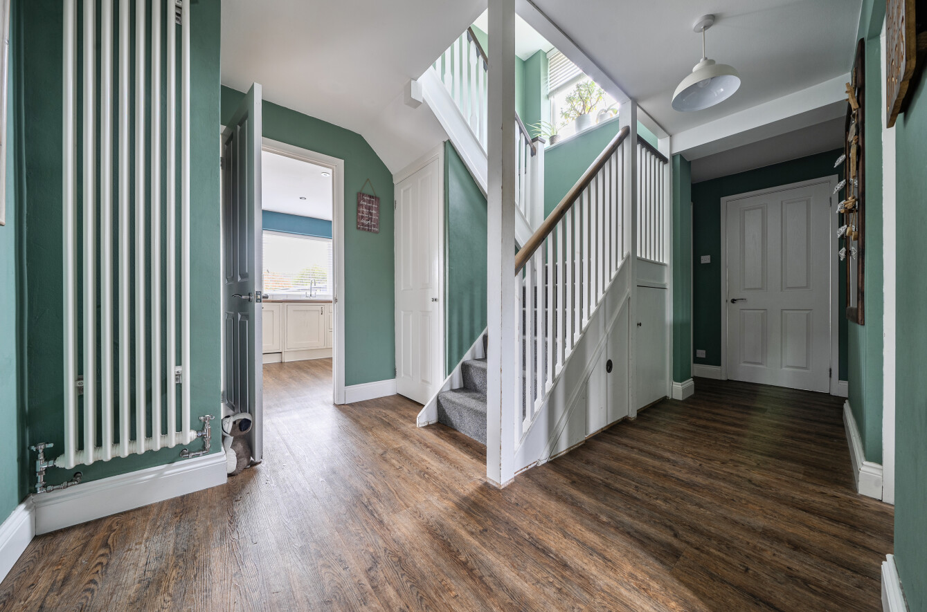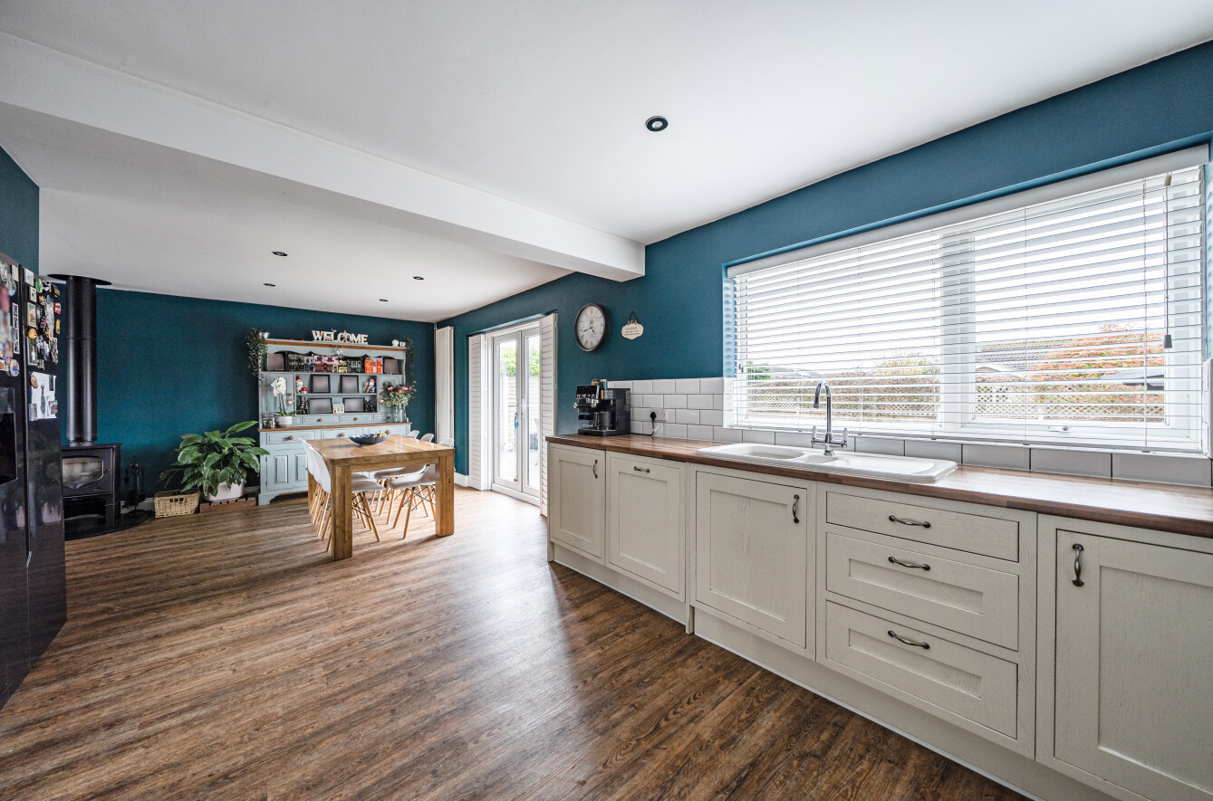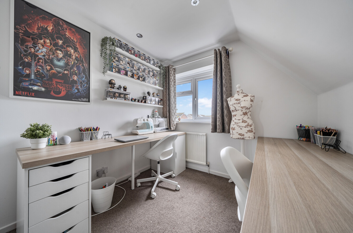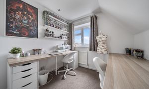 Tucked away in a peaceful cul-de-sac, this well presented detached chalet-style house offers a rare combination of spaciousness, versatility, and modern comfort. Thoughtfully extended to provide approximately 1,477 SqFt of adaptable accommodation, the home is currently arranged as five bedrooms, making it ideal for growing families or those seeking flexible spaces for home offices or hobbies.