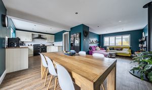 The heart of the house is a stunning open plan kitchen-dining-living area, where natural light pours in, creating a warm and inviting atmosphere for every-day living and entertaining. The modern kitchen is thoughtfully designed with sleek cabinetry, integrated appliances, and ample workspace, complemented by a separate utility room for added convenience. Two modern bath/shower rooms ensure comfort and practicality for busy households. With its welcoming entrance hall and versatile layout, this property offers a wonderful canvas to suit a range of lifestyles.