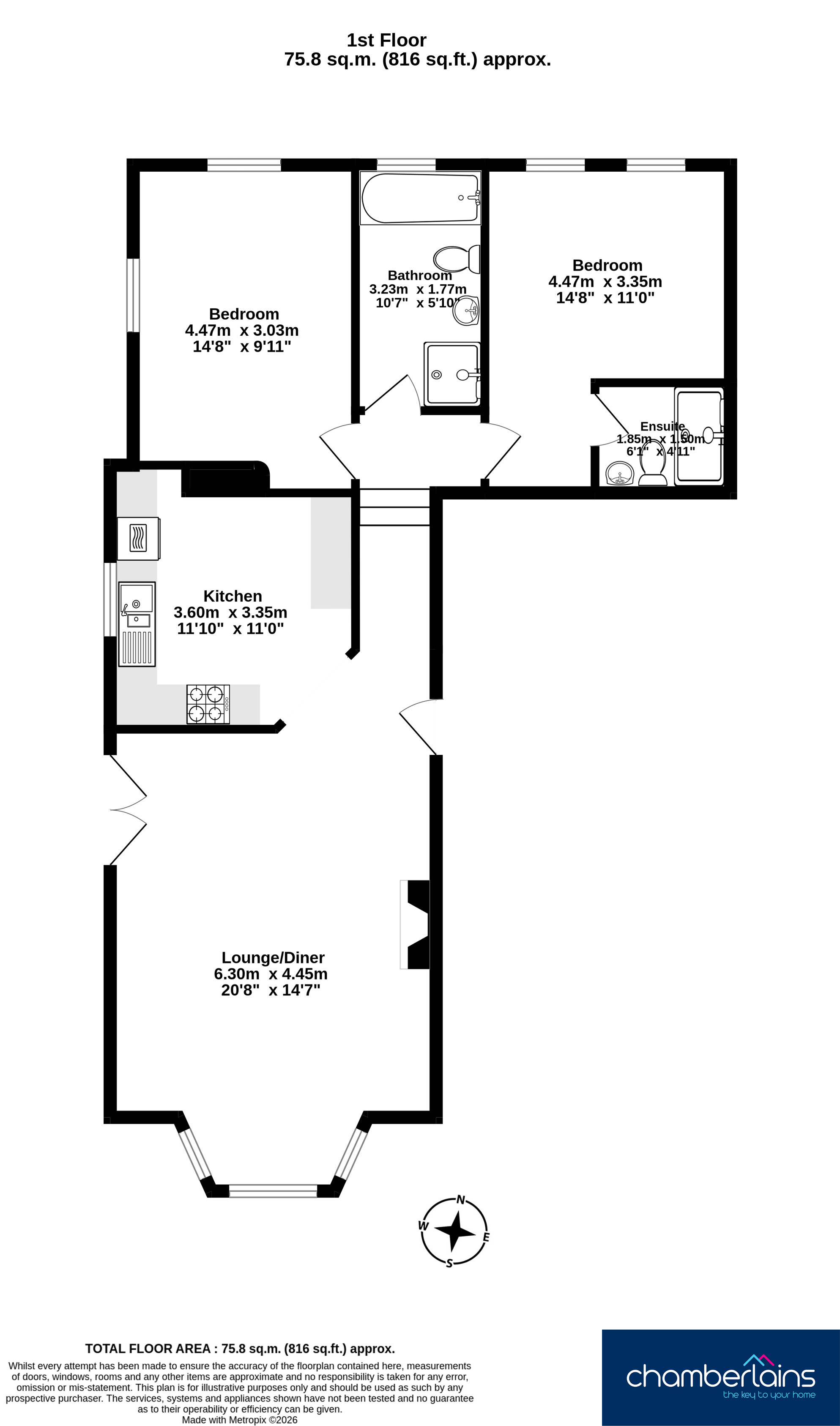 Ensuite: 1.85m x 1.50m (6’1” x 1’11”)