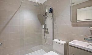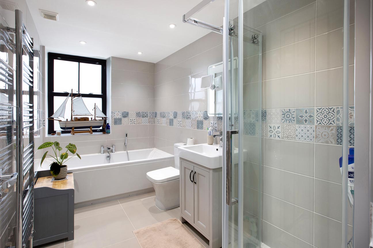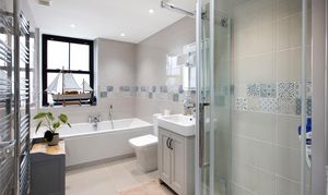 - Sleek Bathroom with Bathtub and Shower Cubicle