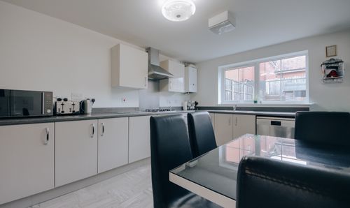 - Modern kitchen with sleek cabinetry, integrated appliances, and excellent natural light.