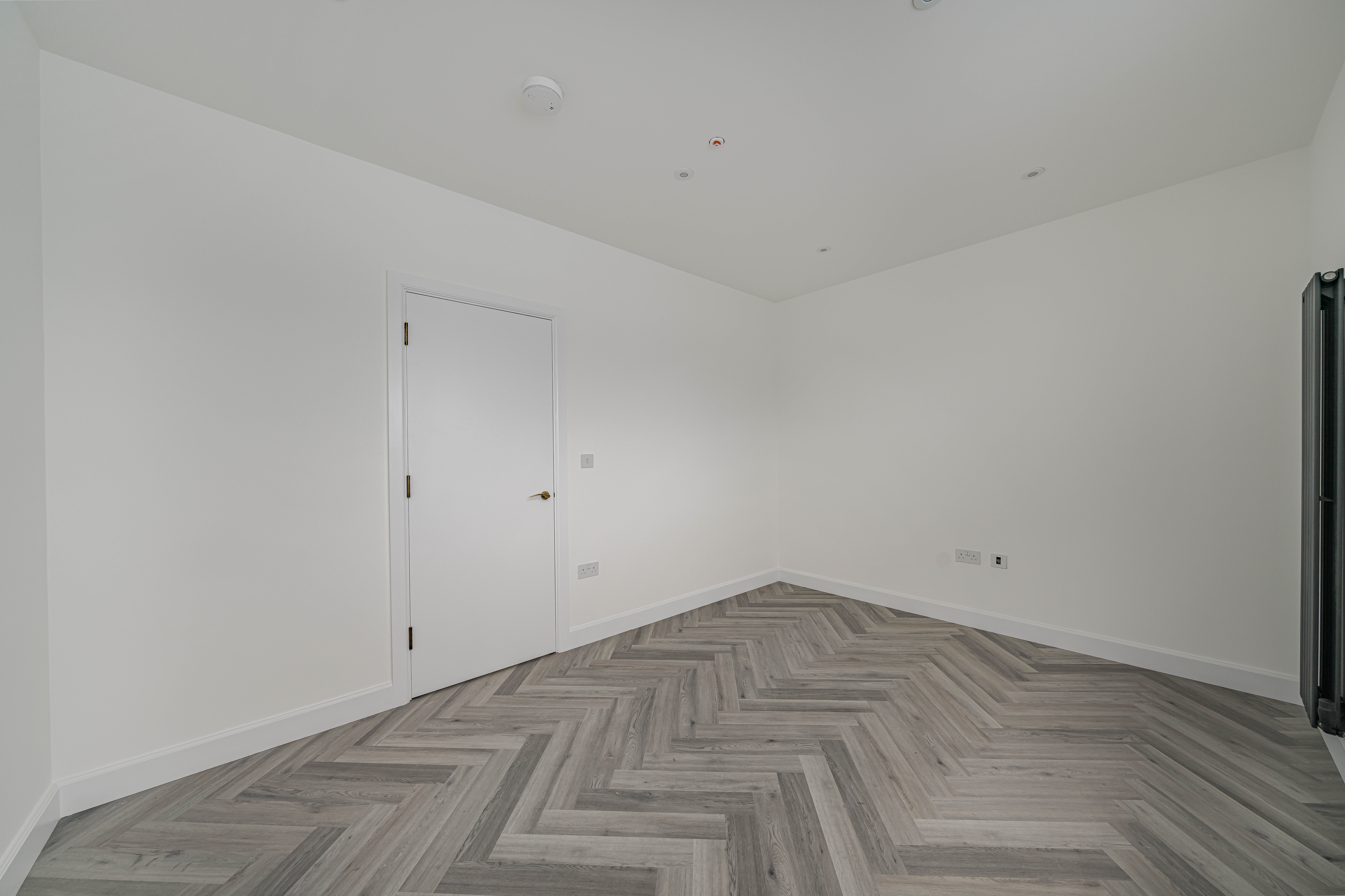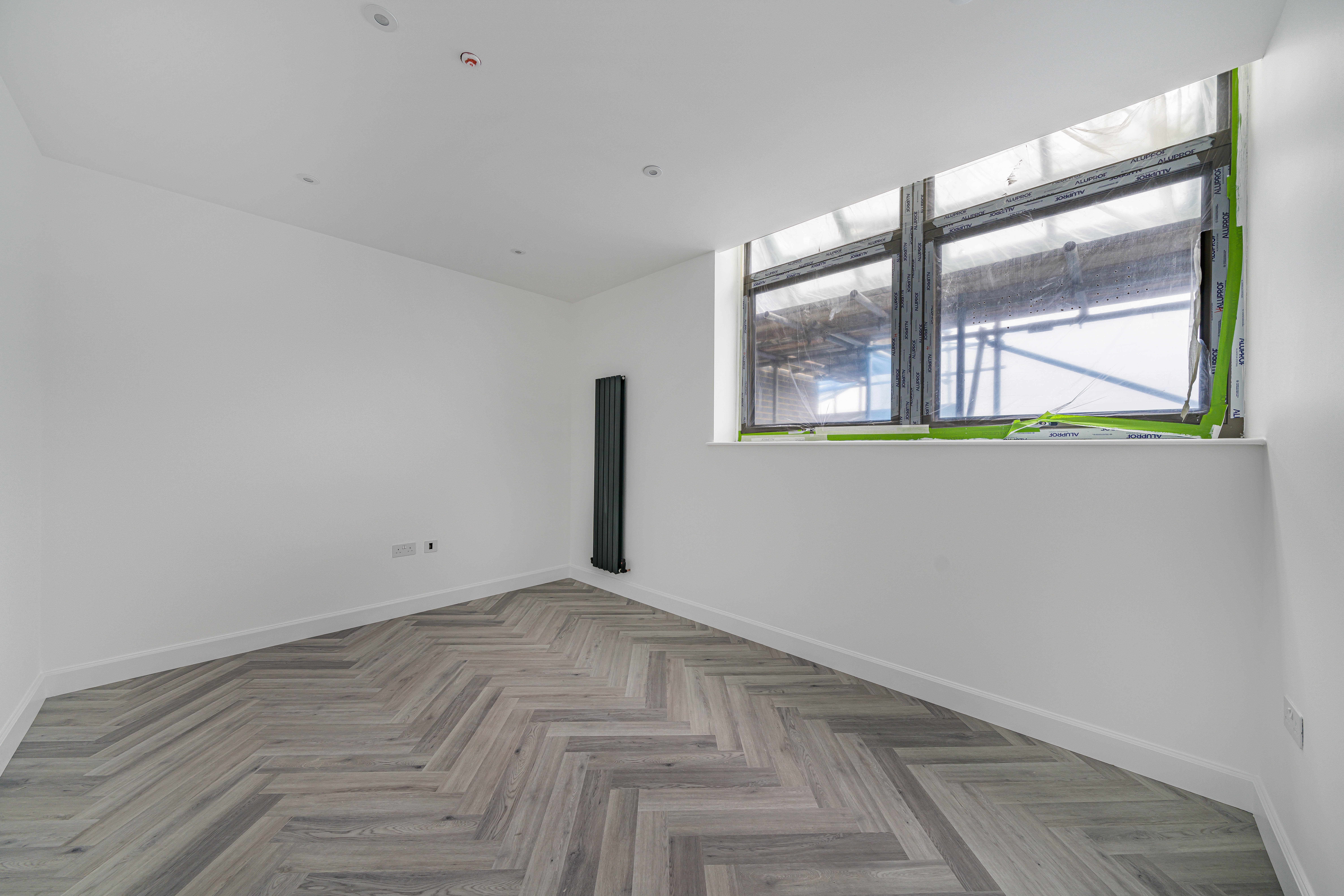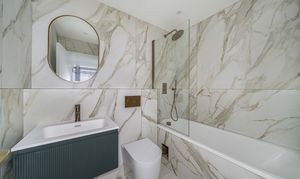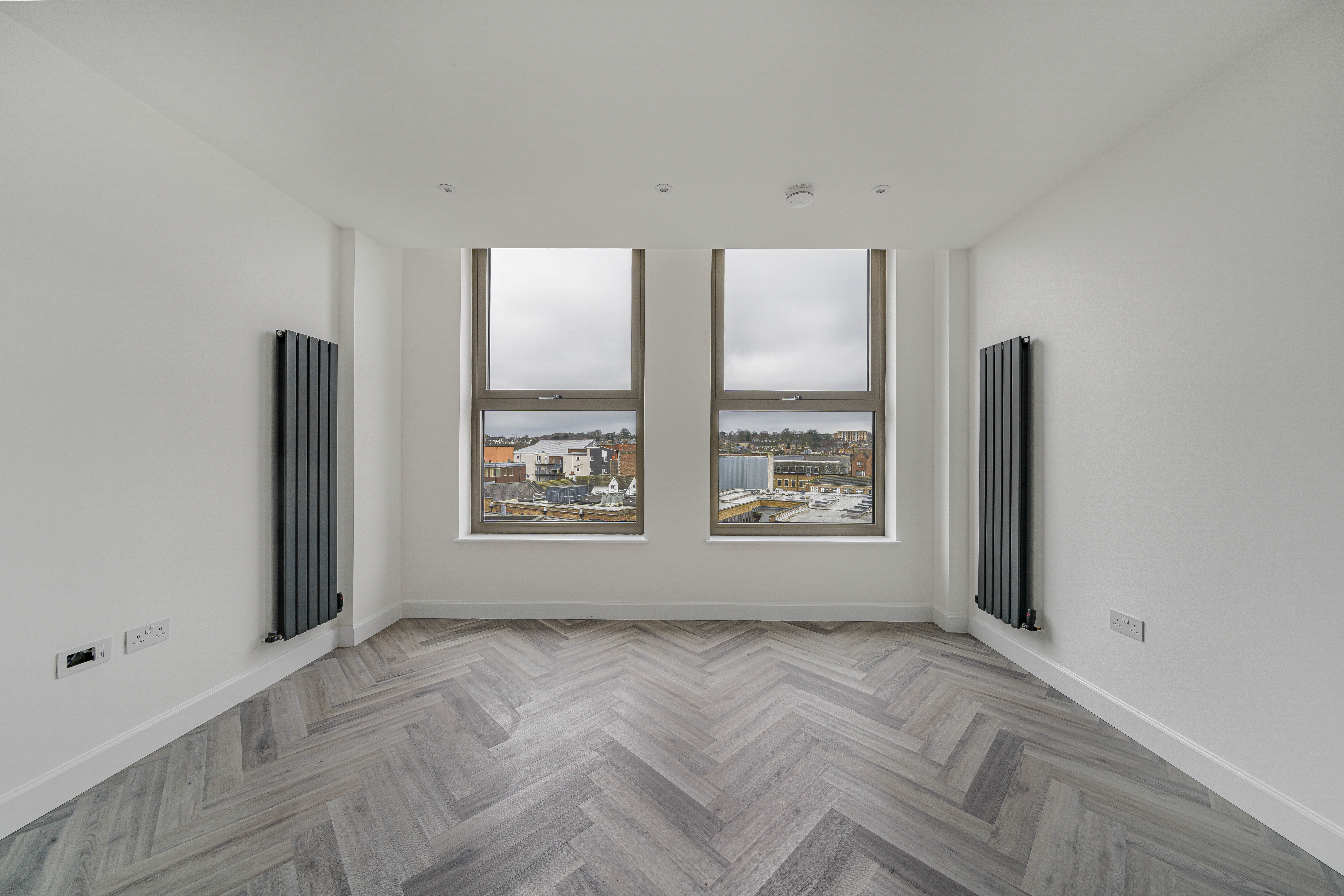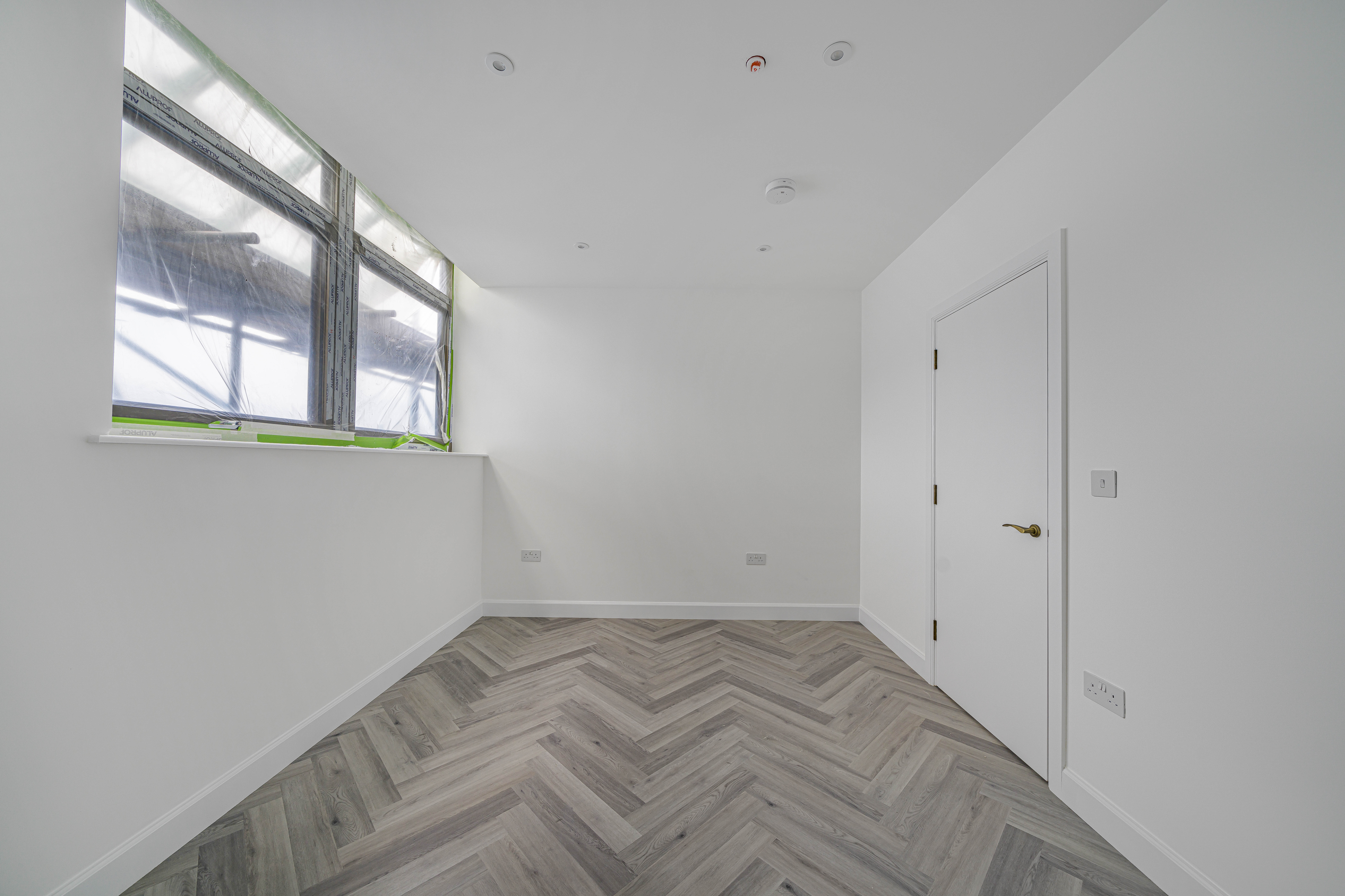 Designed with a focus on contemporary elegance and functionality, this exceptional flat features an open-plan layout that provides a versatile and spacious living area, ideal for both relaxing and entertaining. The sleek, modern kitchen is equipped with high-quality integrated appliances, offering a seamless and stylish cooking environment that will appeal to both budding chefs and those who appreciate modern design. Throughout the apartment, elegant herringbone-style flooring adds a timeless sense of character and sophistication, beautifully complemented by the abundance of natural light that floods in through large windows, creating a bright, airy, and inviting atmosphere. The living space is further enhanced by contemporary vertical radiators, which provide efficient heating while also acting as a chic design feature. The modern bathroom is finished to a high standard, featuring gold fixtures that add a luxurious touch to the contemporary décor.