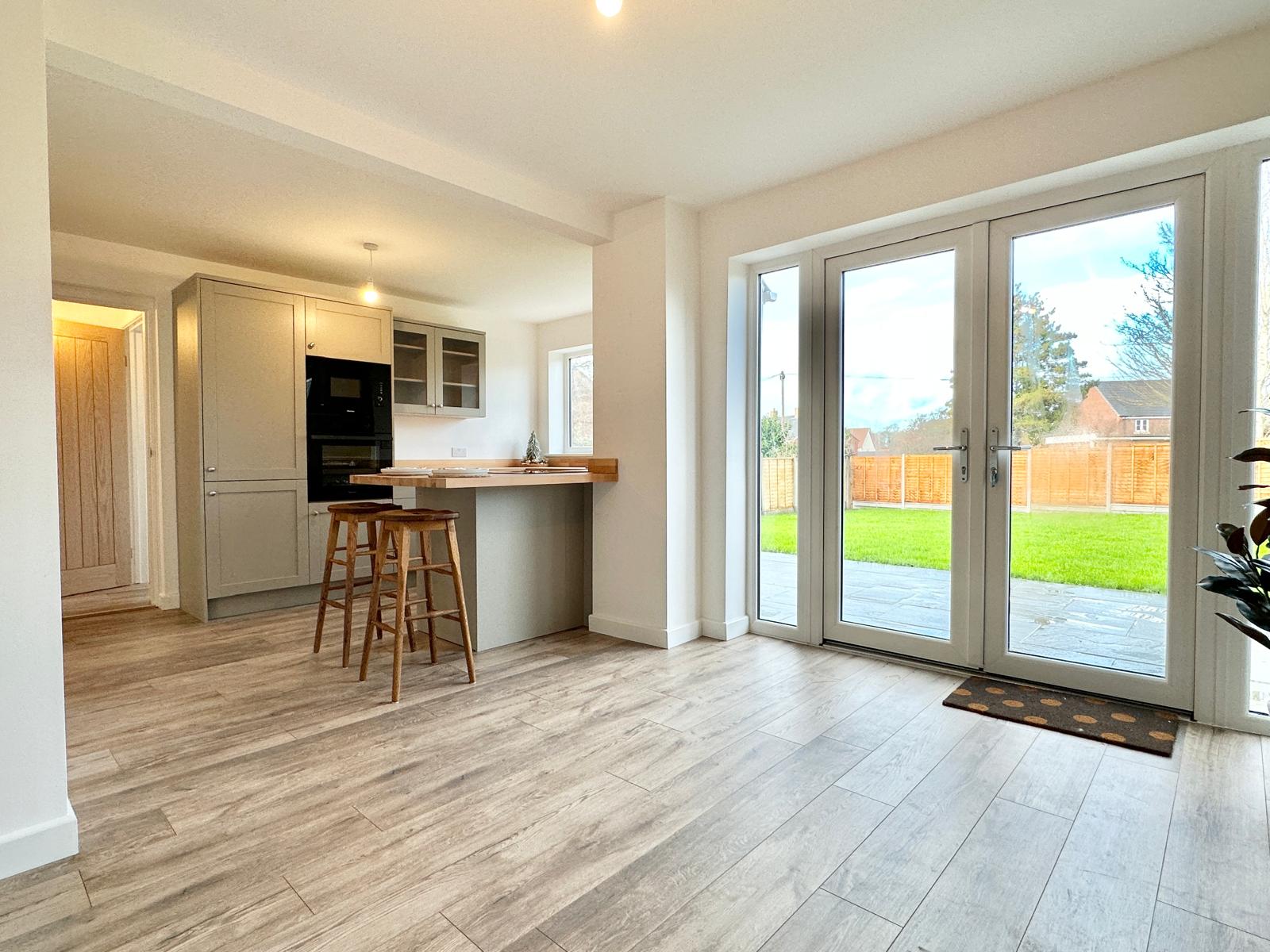 The internal accommodation comprises a welcoming and spacious entrance hall with a staircase rising to the first floor landing and doors off to a cosy lounge with feature wall panelling and a large picture window to the front. The rear of the property is dominated by the amazing Kitchen/Diner, with the kitchen area being fitted with a range of modern Shaker style wall and base units with complementary work surfaces and breakfast bar and a selection of fitted appliances. French doors with full height sidelights lead out to the gardens from the living/dining area. A door from the kitchen leads into a fourth bedroom/study and a downstairs shower room.