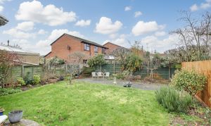 Enclosed West facing rear garden mainly laid to lawn with flower and shrub borders. Large patio areas. Gated access to side.