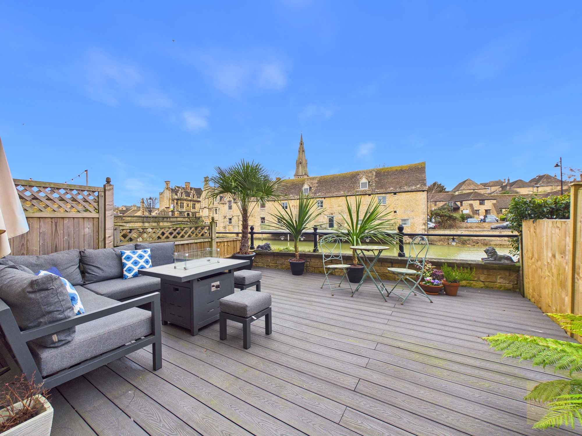 “We were drawn to the river straight away. The views of the churches, the wildlife, being able to walk everywhere… it just felt like we were right in the heart of Stamford. Throwing open the patio doors in summer and using the deck as an extension of the house has been really special. And honestly, having The George as our local hasn’t hurt either.”