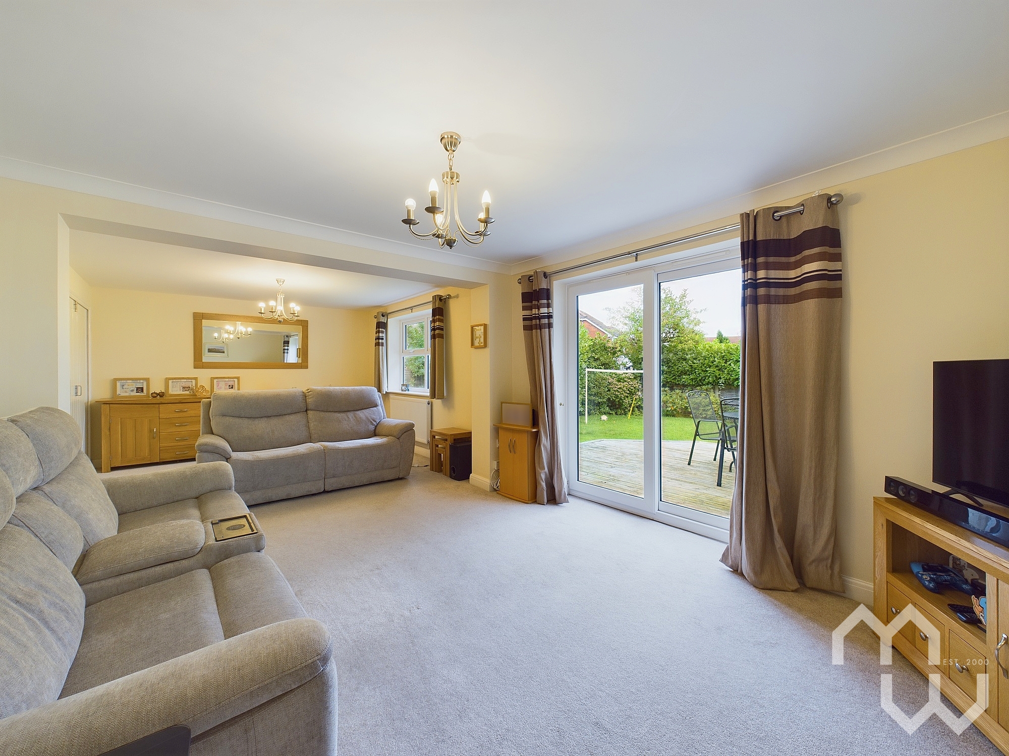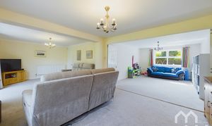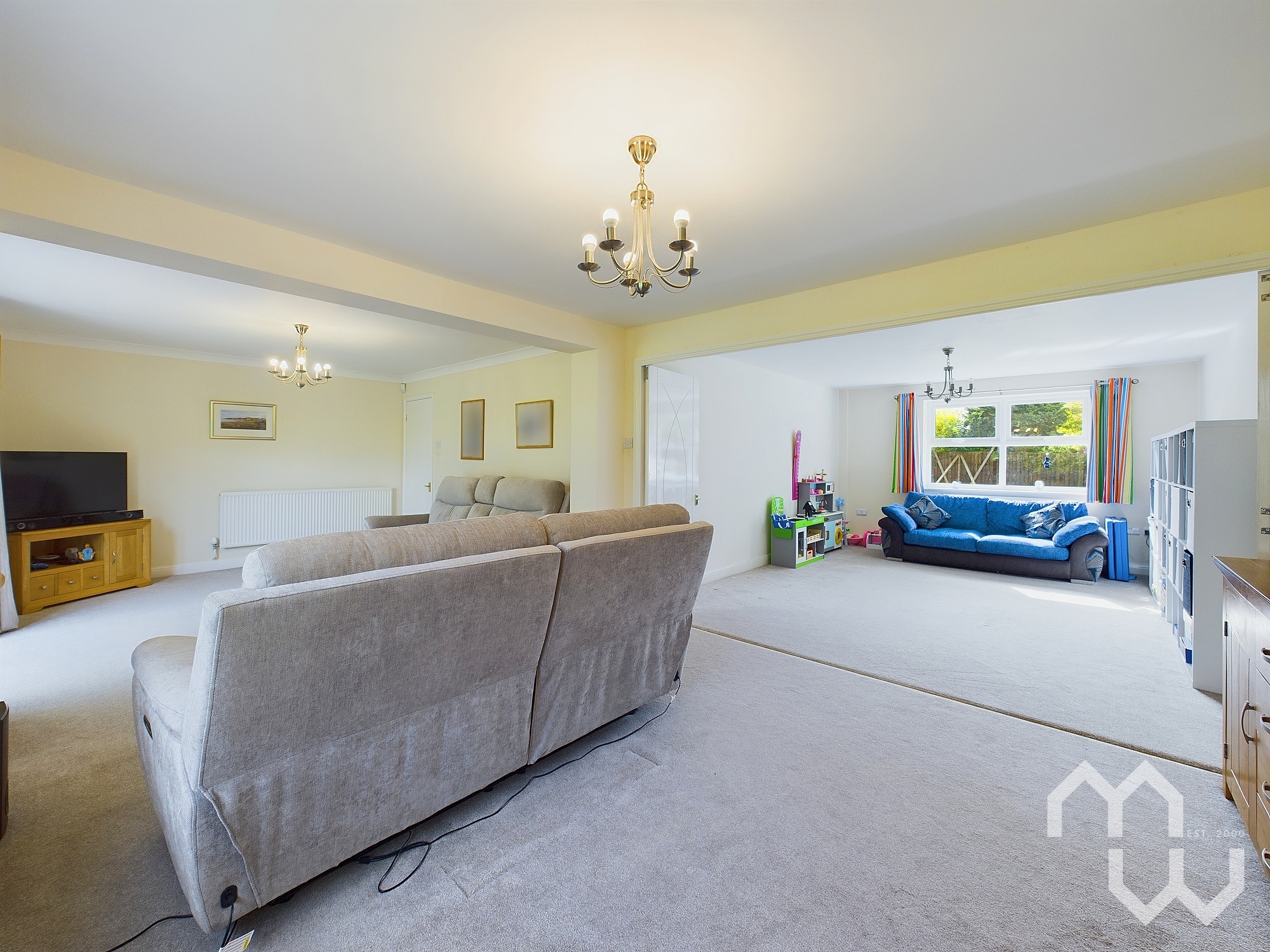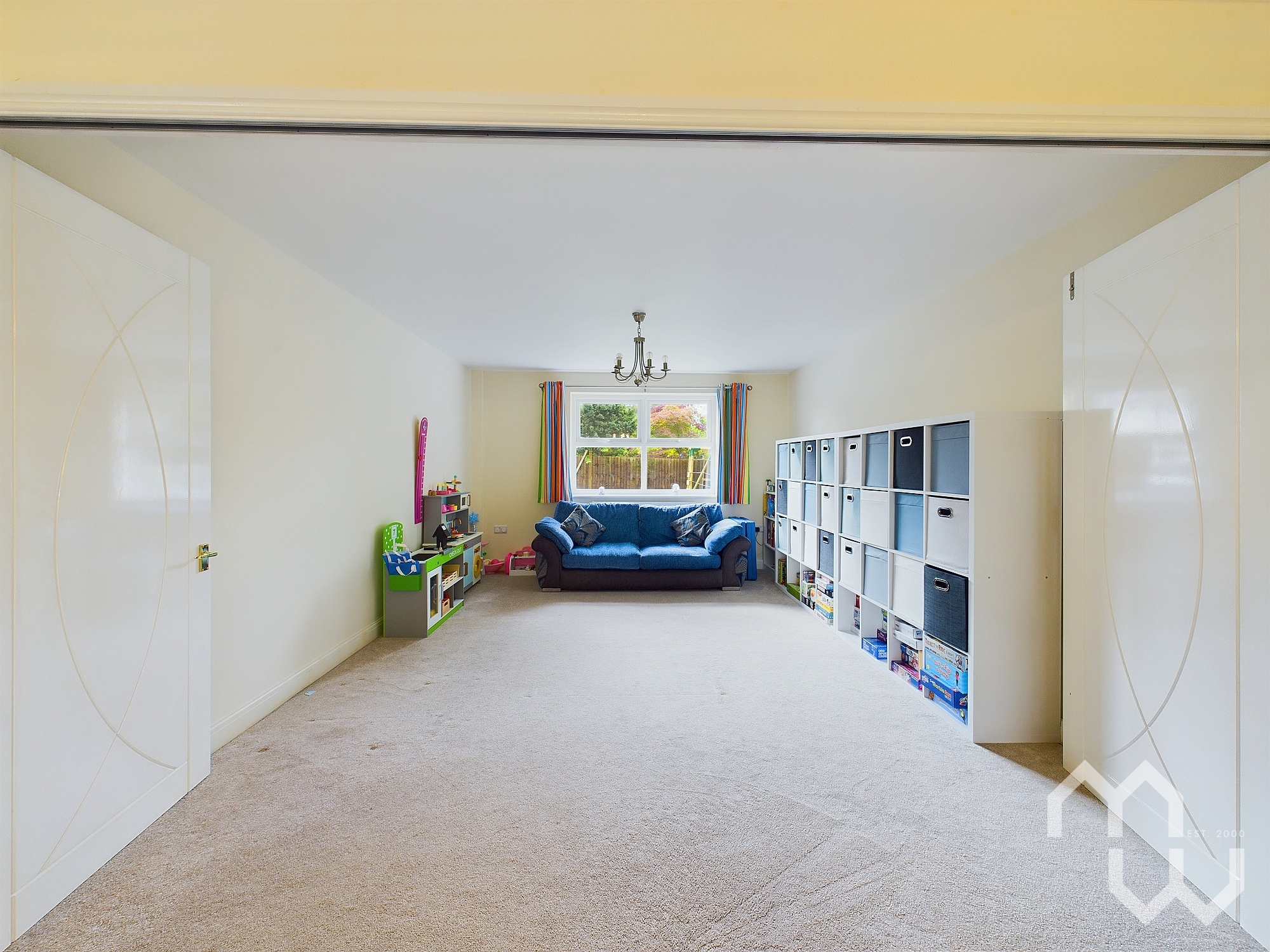Extending living area open from lounge with sliding doors, currently used as Play room. Window to front.