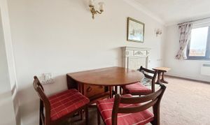 Carpeted, double glazed bay window to front with views across The Strand and marshland, fireplace with potential for electric fire, electric radiator, space for dining table. Access to: