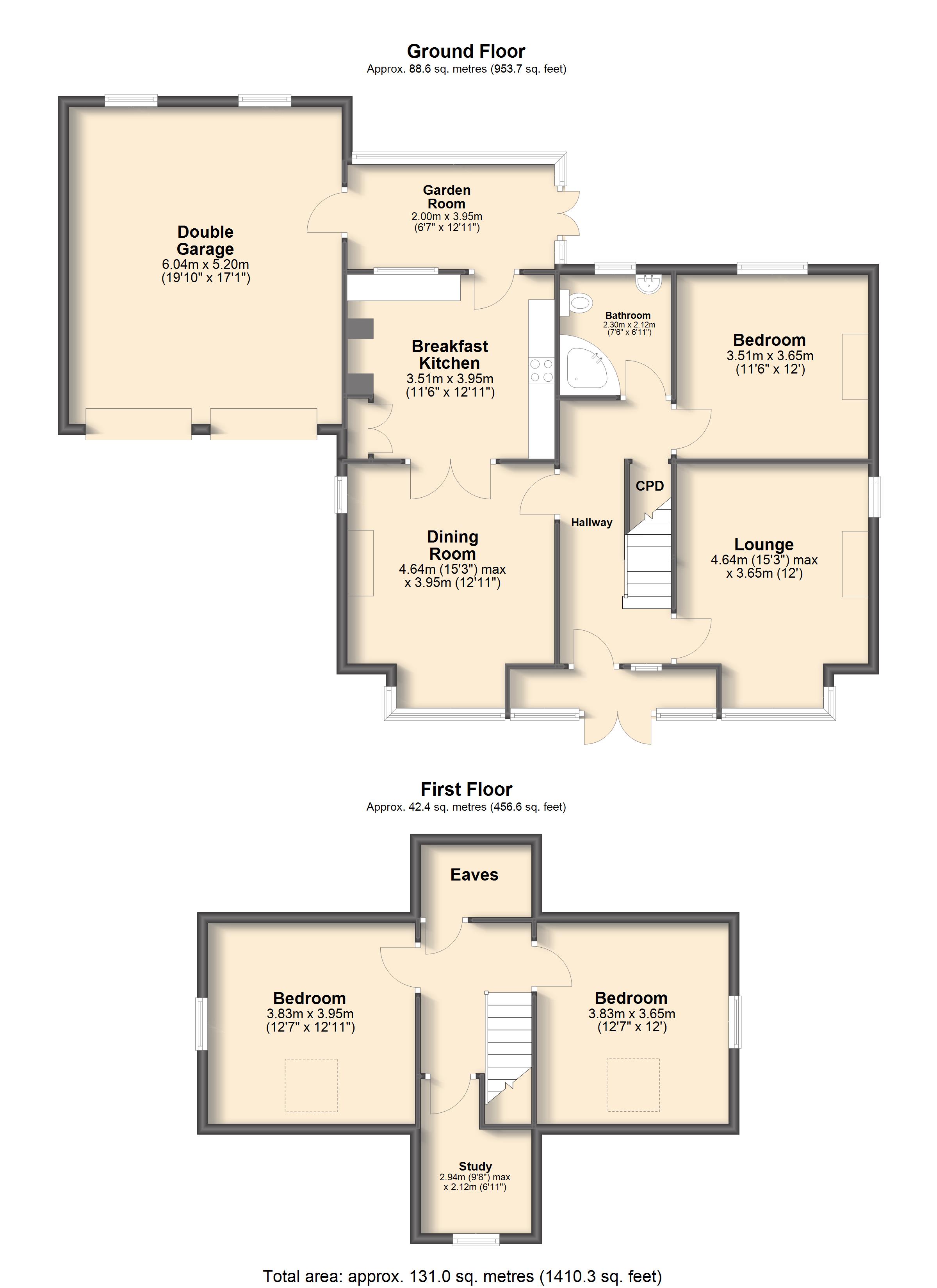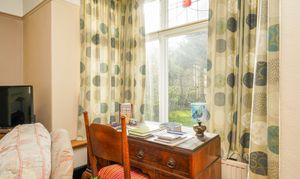 The ground floor layout includes one of three generously sized double bedrooms, each offering comfortable accommodation and flexibility for guest or family use. Upstairs, you will find two further double bedrooms alongside a versatile study, ideal for those working from home or seeking a quiet reading nook.