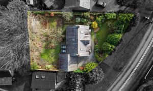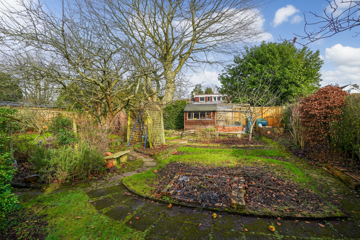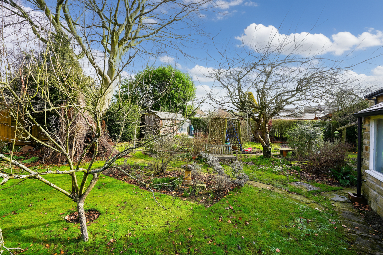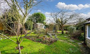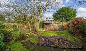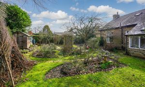 The property occupies a substantial plot, with mature trees, allotment areas and lawns to the front and rear. Practical benefits include a double garage and a gated driveway with parking for two vehicles, providing secure, convenient off-road parking.