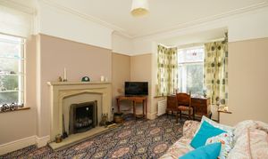 - Bay Windowed Lounge With Stone Surround Fireplace