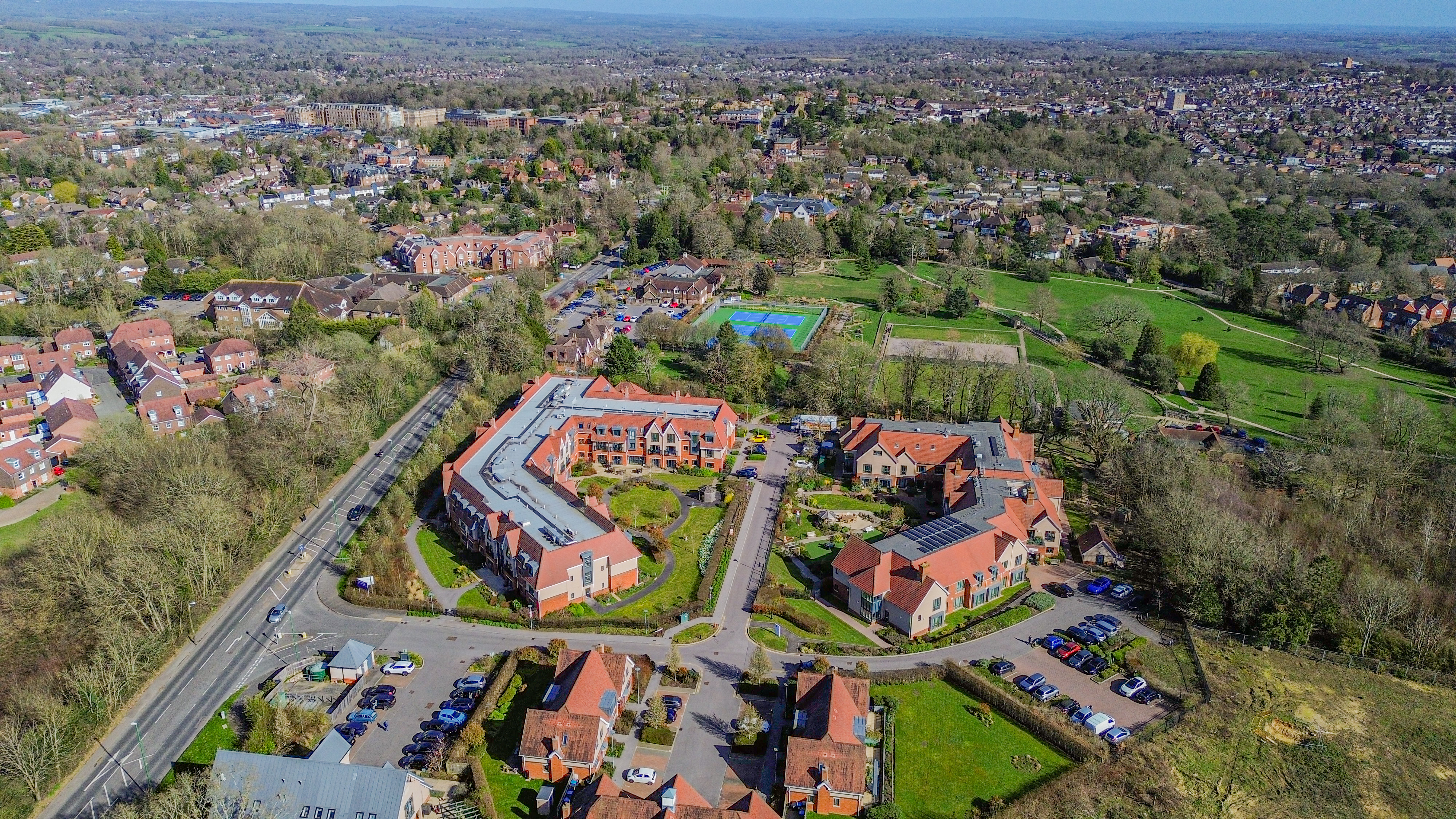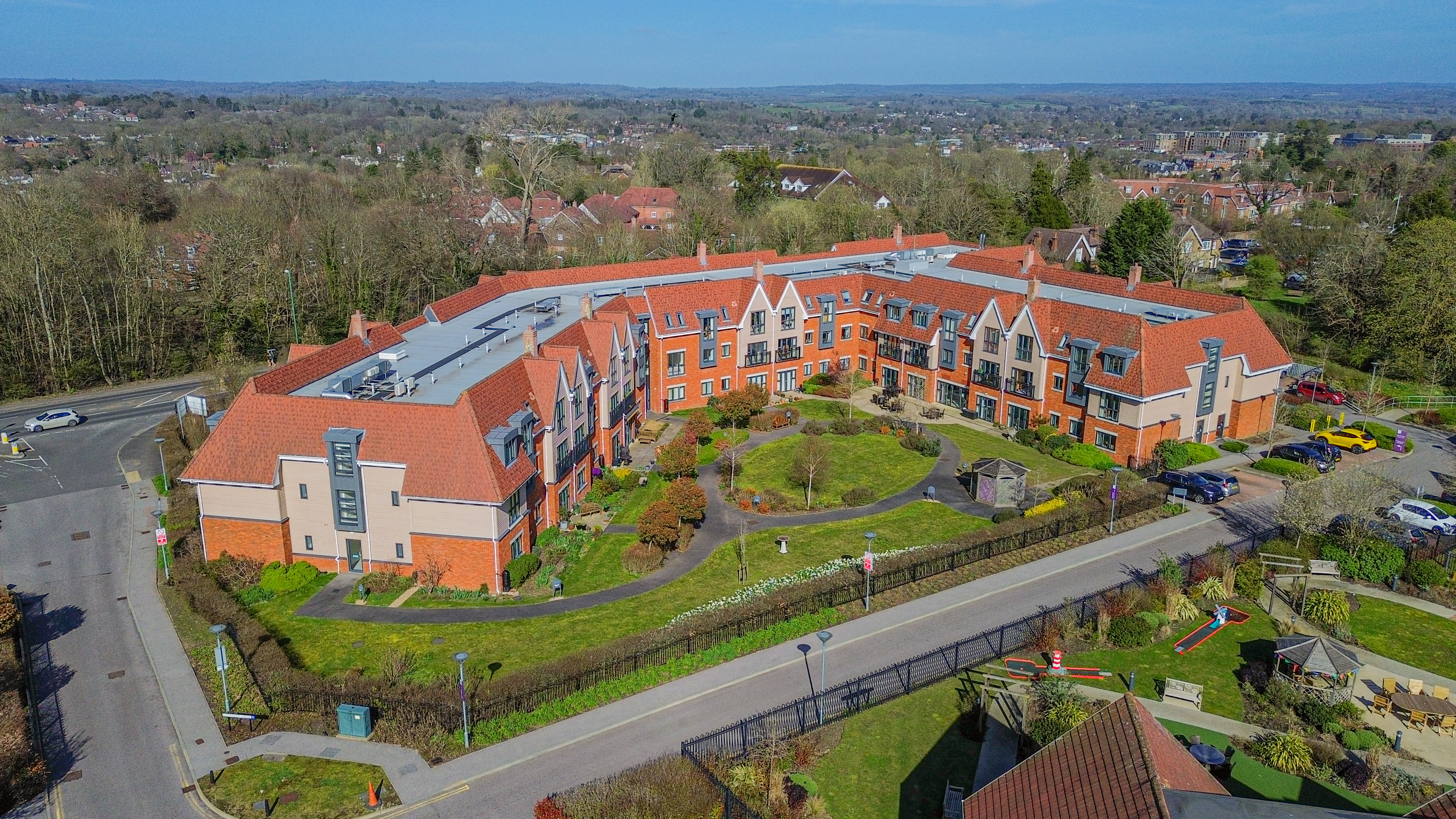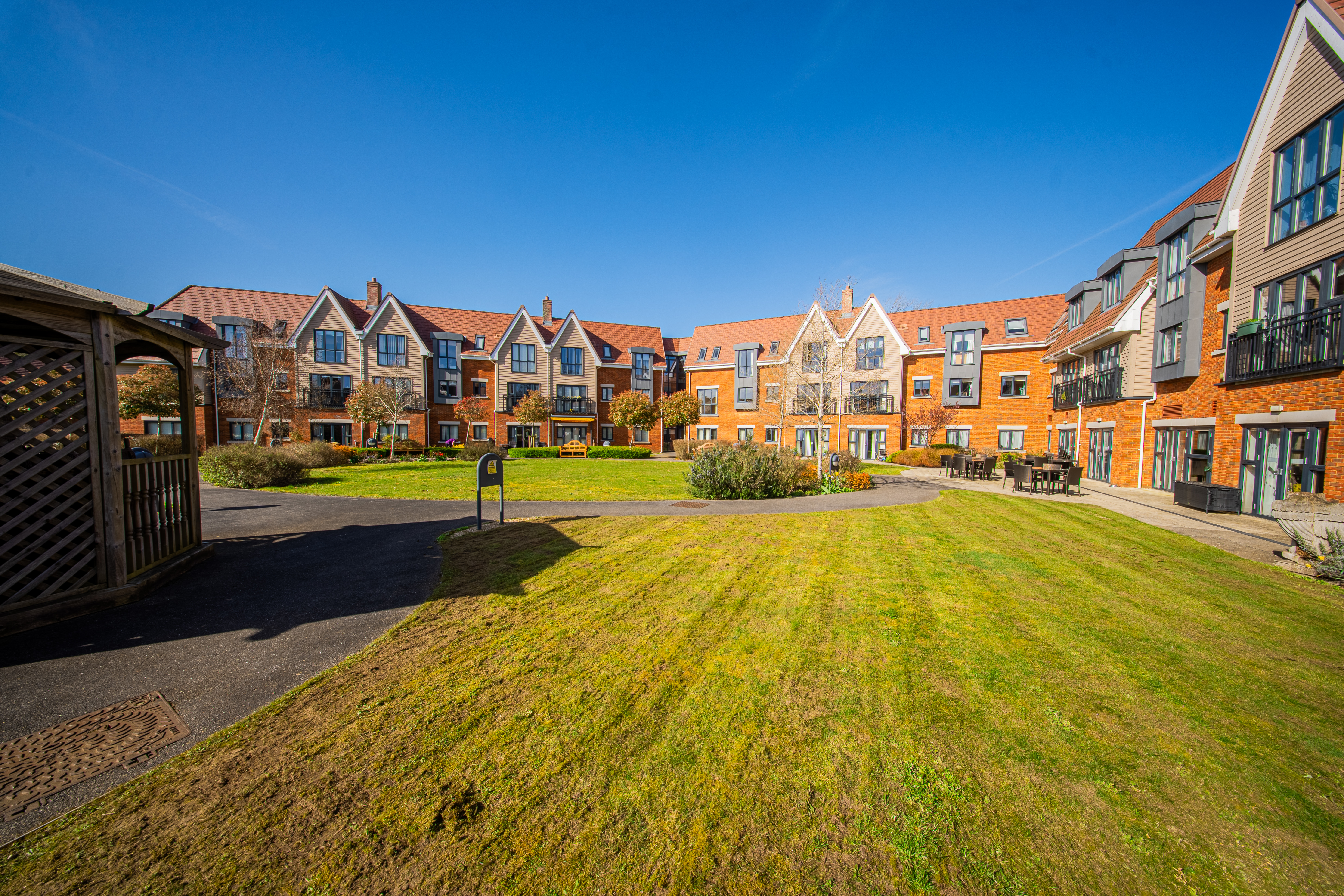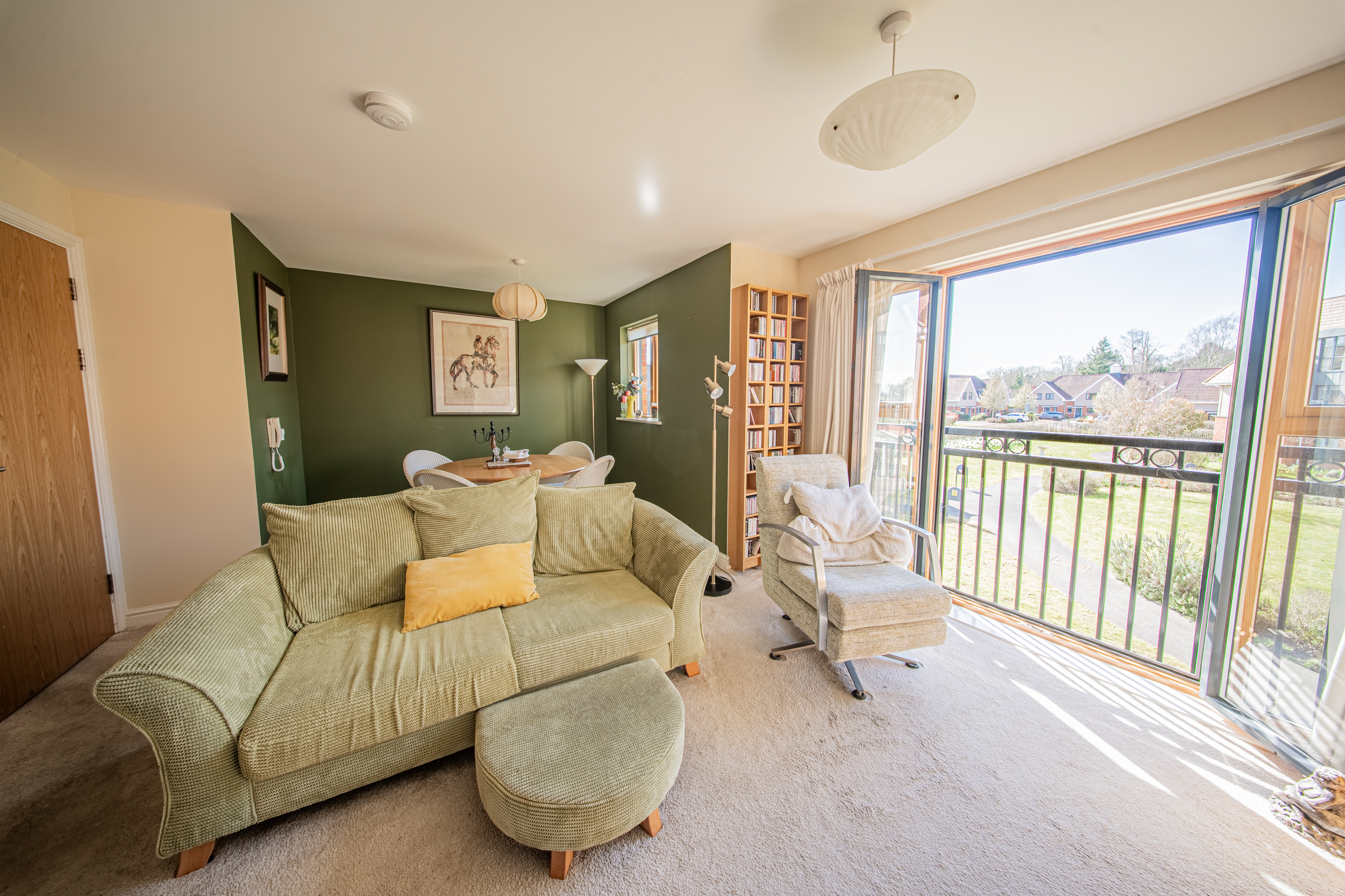 A sunny 2 bedroom, 2 bathroom first floor west facing apartment overlooking the communal gardens in this highly desirable retirement complex on the town’s western edge adjoining Beech Hurst Gardens and opposite Paiges Meadow nature reserve yet within walking distance of the town centre and railway station.