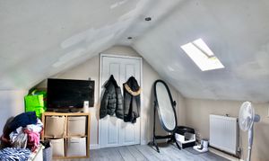 - Converted attic room/occasional guest room