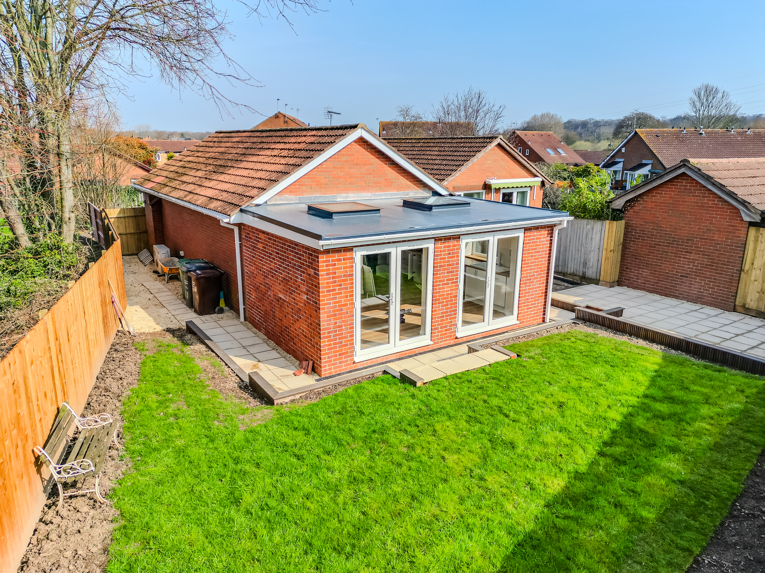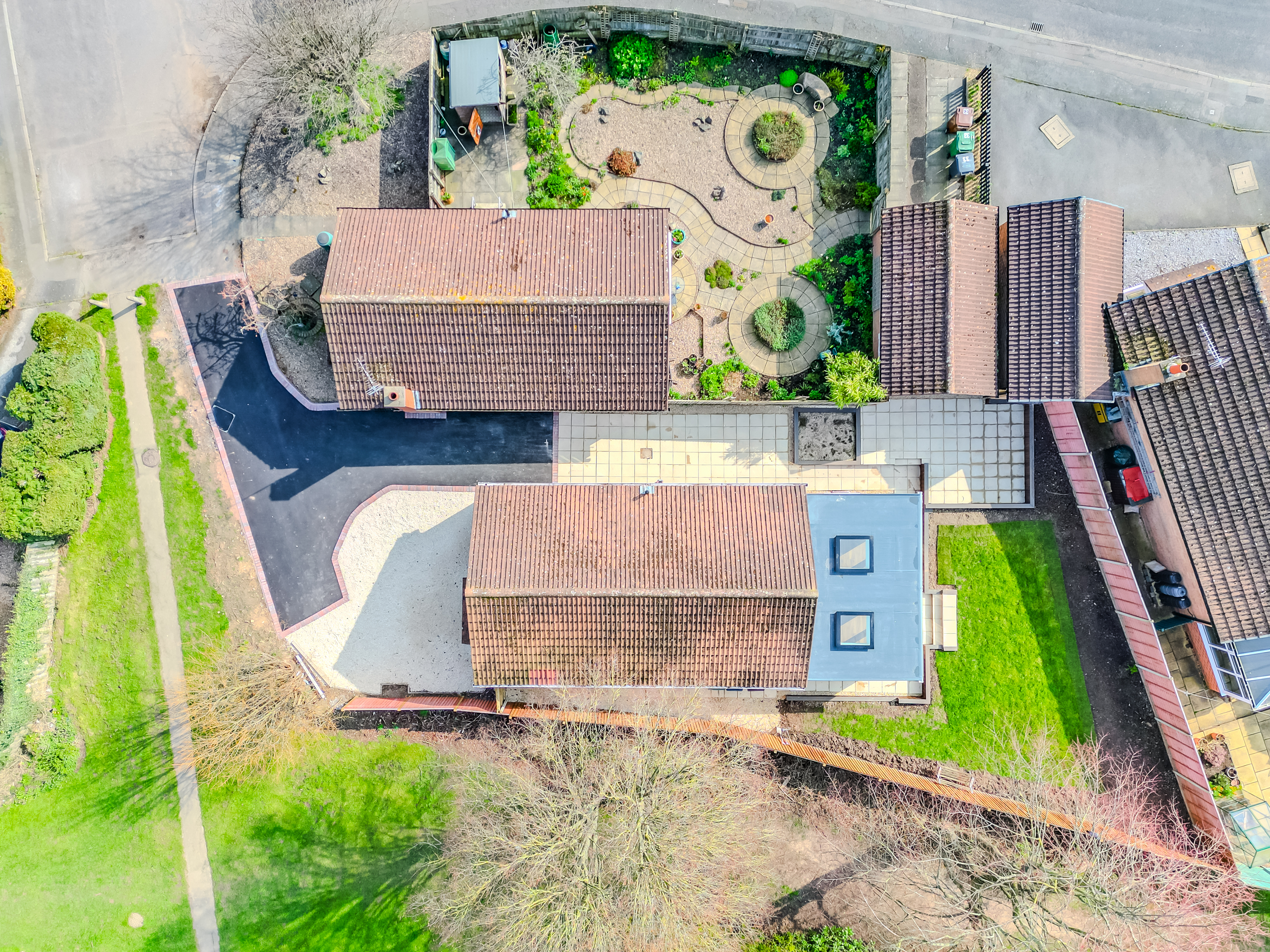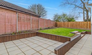Externally to the low-maintenance rear garden,it has been landscaped to provide both entertaining and practical outdoor space. A generous paved patio area offers an ideal setting for outdoor dining and seating, with steps leading up to a neatly laid lawn. To the side and front, the property offers a spacious driveway with ample off-road parking for multiple vehicles.