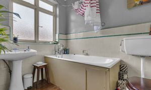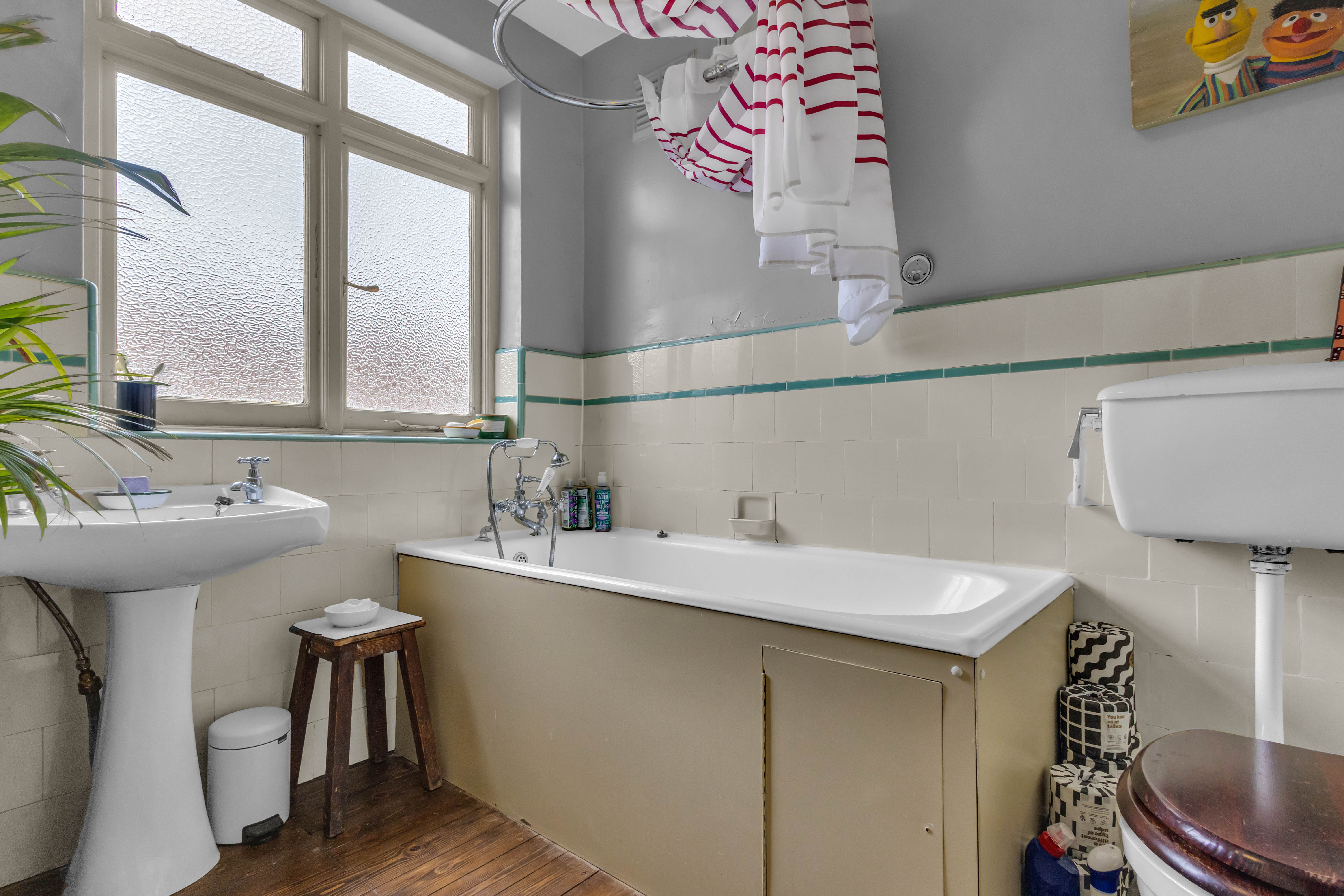 The bathroom retains several original features including a Royal Doulton sink, period tiles and a re-enamelled bathtub, blending historic charm with recent maintenance and improvements.