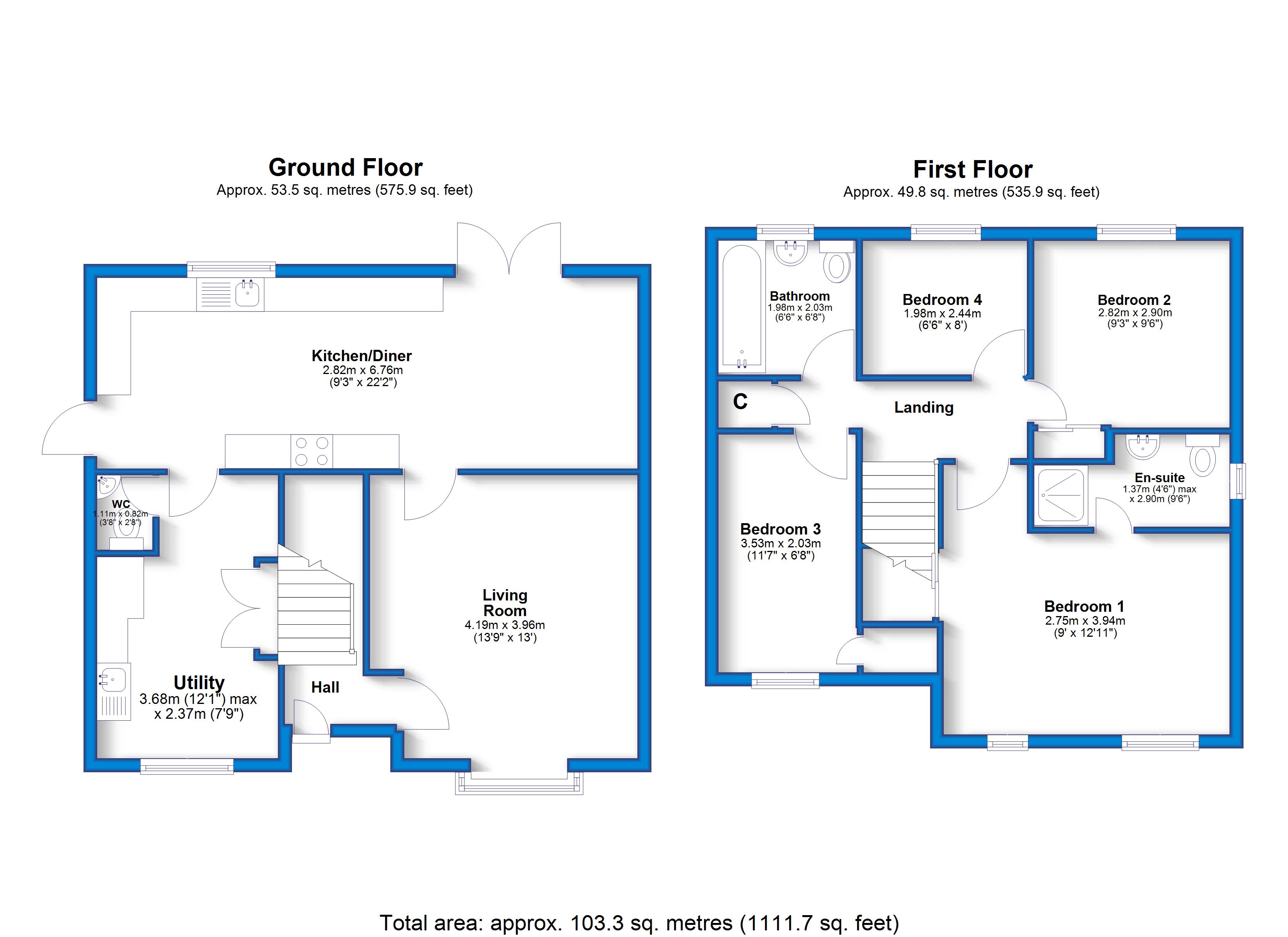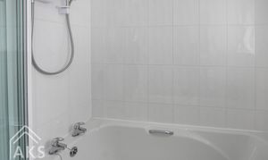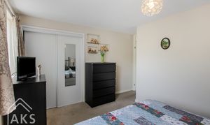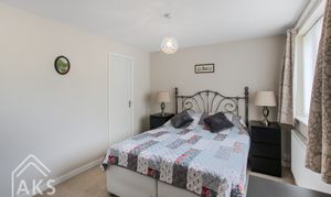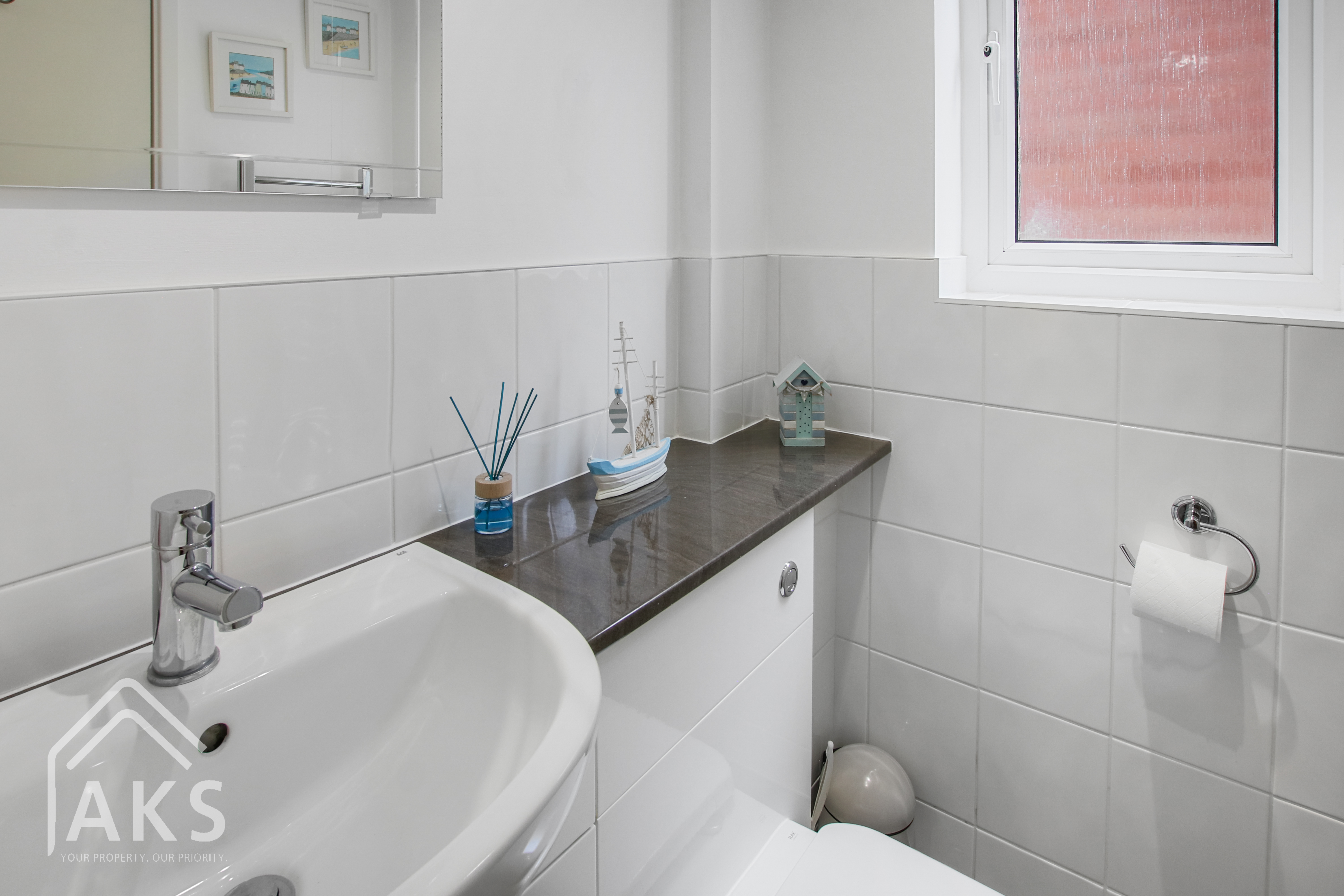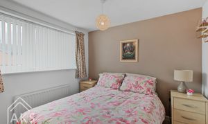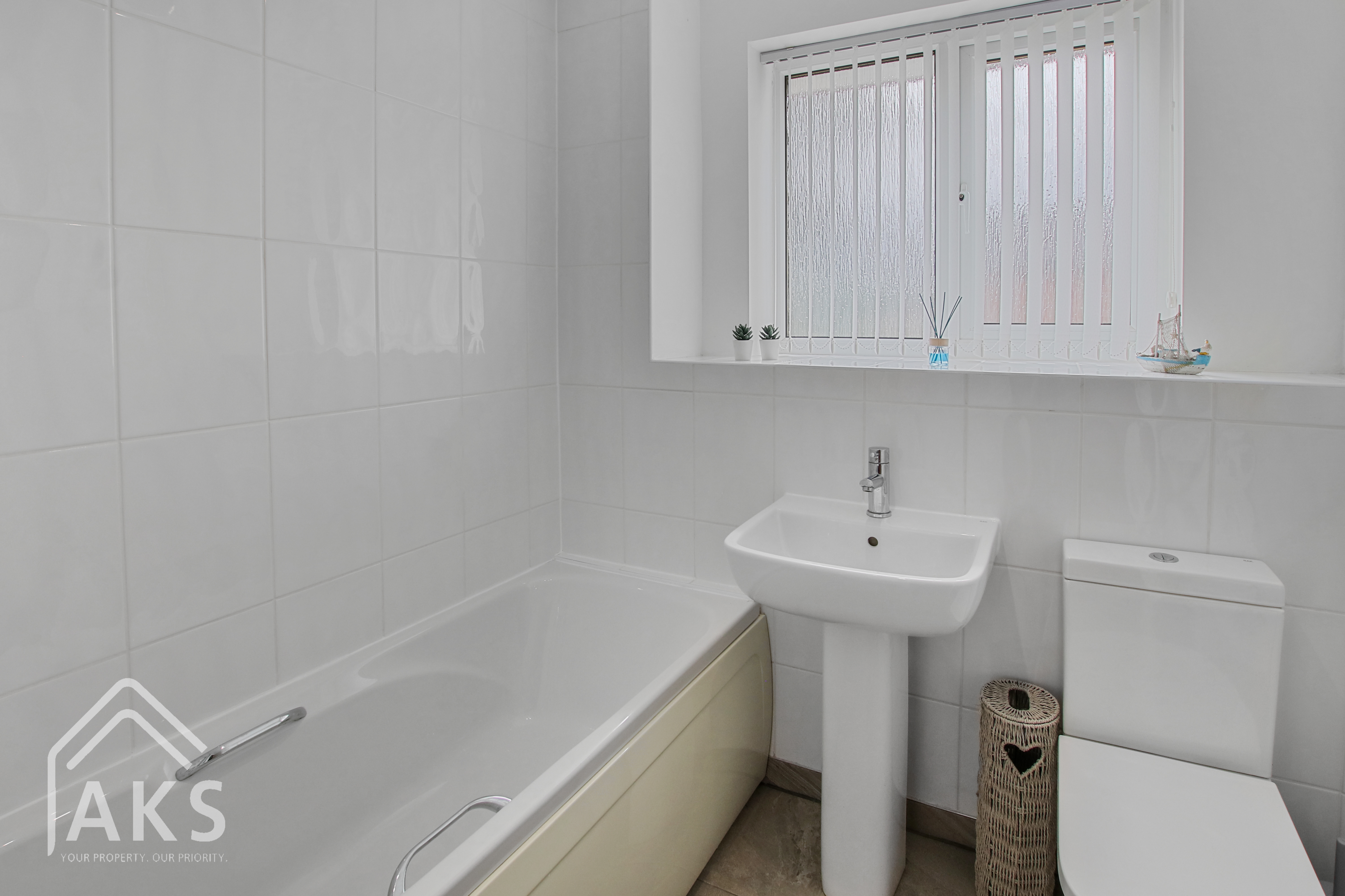Upstairs the bedrooms are a generous size. Bedroom one has got to be my favourite, with double windows, lots of floor space, sliding fitted wardrobes and an en-suite. Bedroom two also benefits from some fitted storage space! There’s the family bathroom too, as well as a large cupboard on the landing housing the boiler and plenty of space for storage.