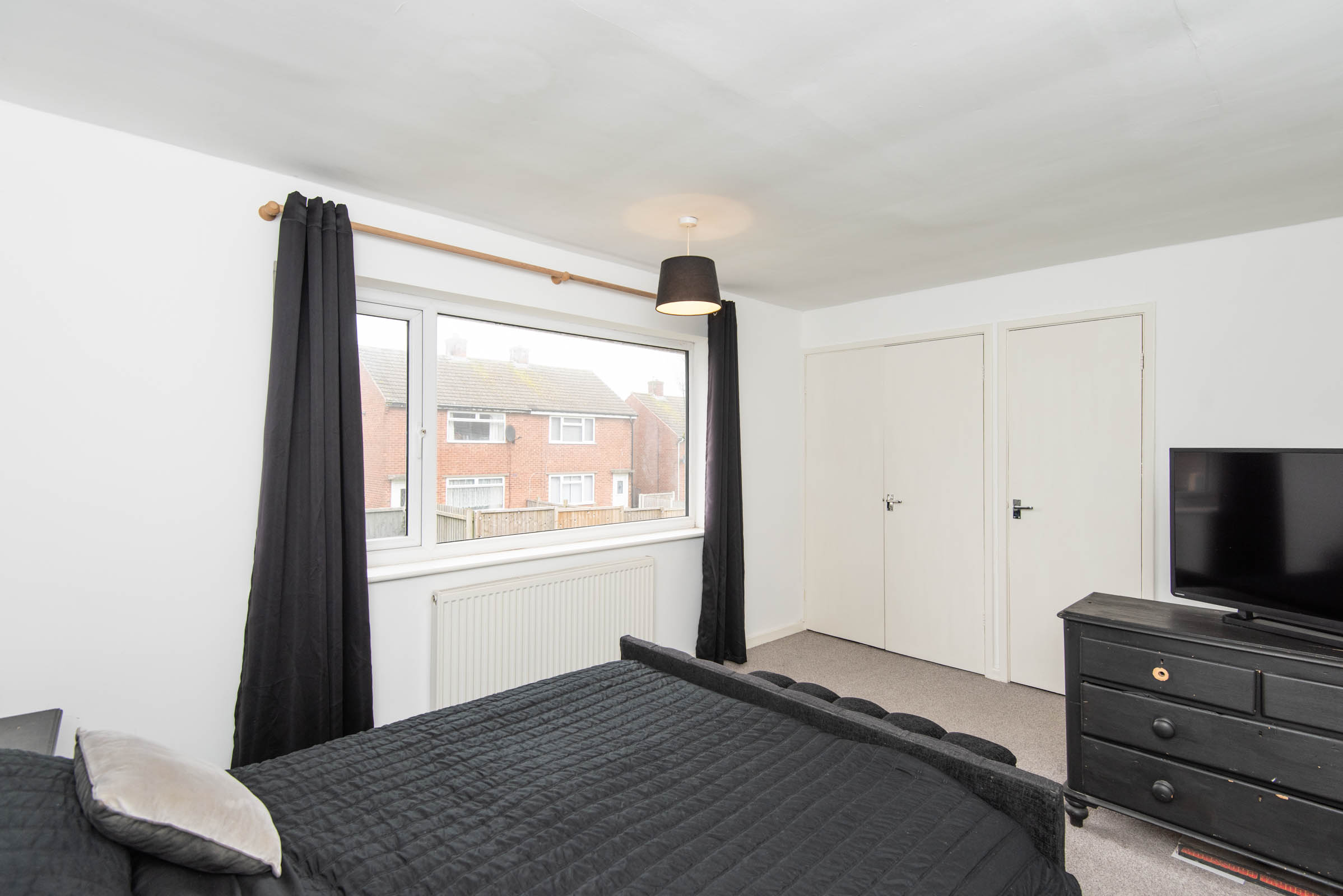 Upstairs, the property offers two generous double bedrooms, both with space for wardrobes and additional furniture. A modern family bathroom completes the first floor.