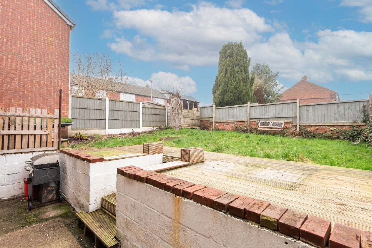 Outside, the rear garden offers a good-sized outdoor area with decking and lawn. While it would benefit from landscaping, it provides clear potential to create an attractive outdoor space for relaxing or entertaining. To the side of the property there is off-street parking.