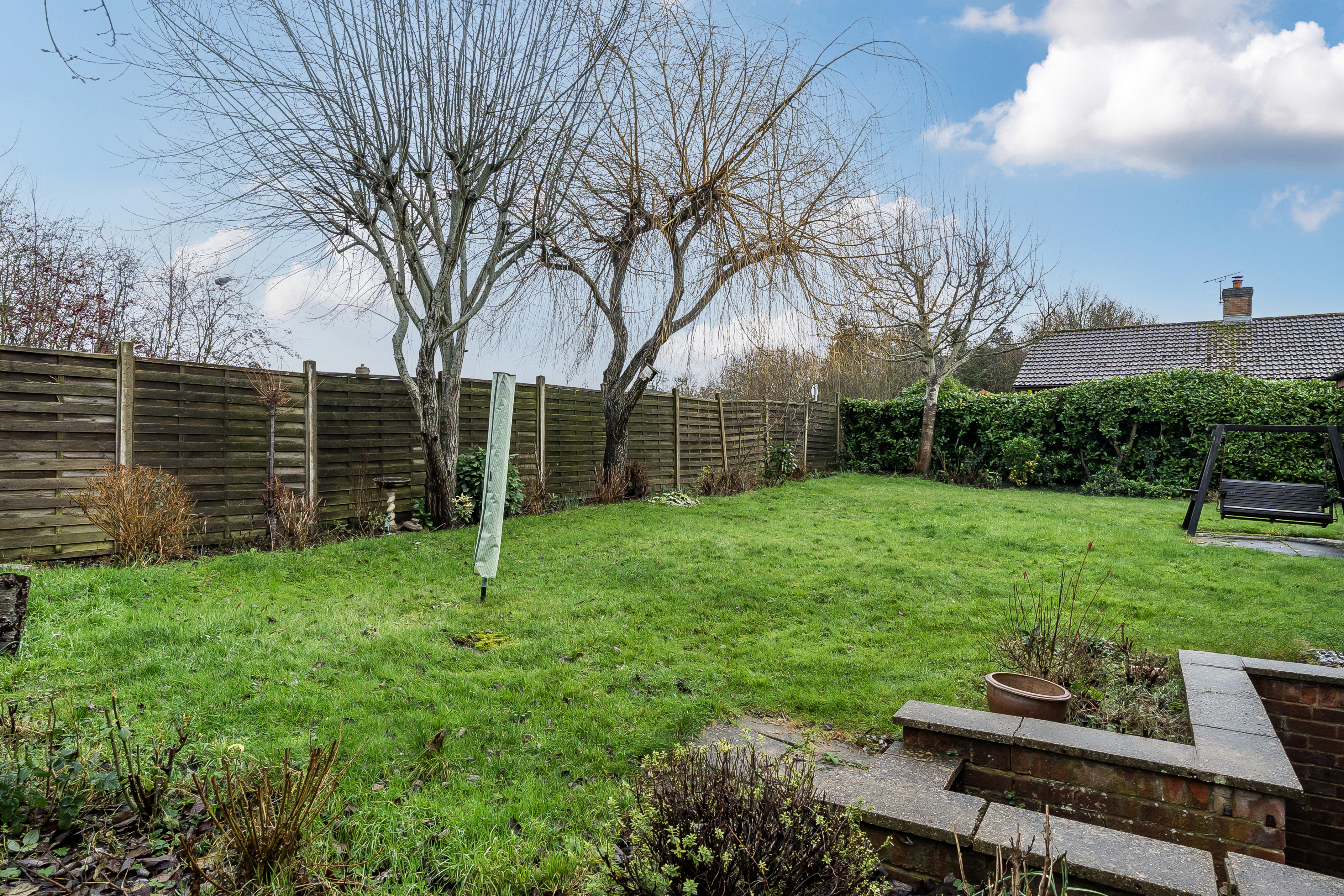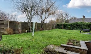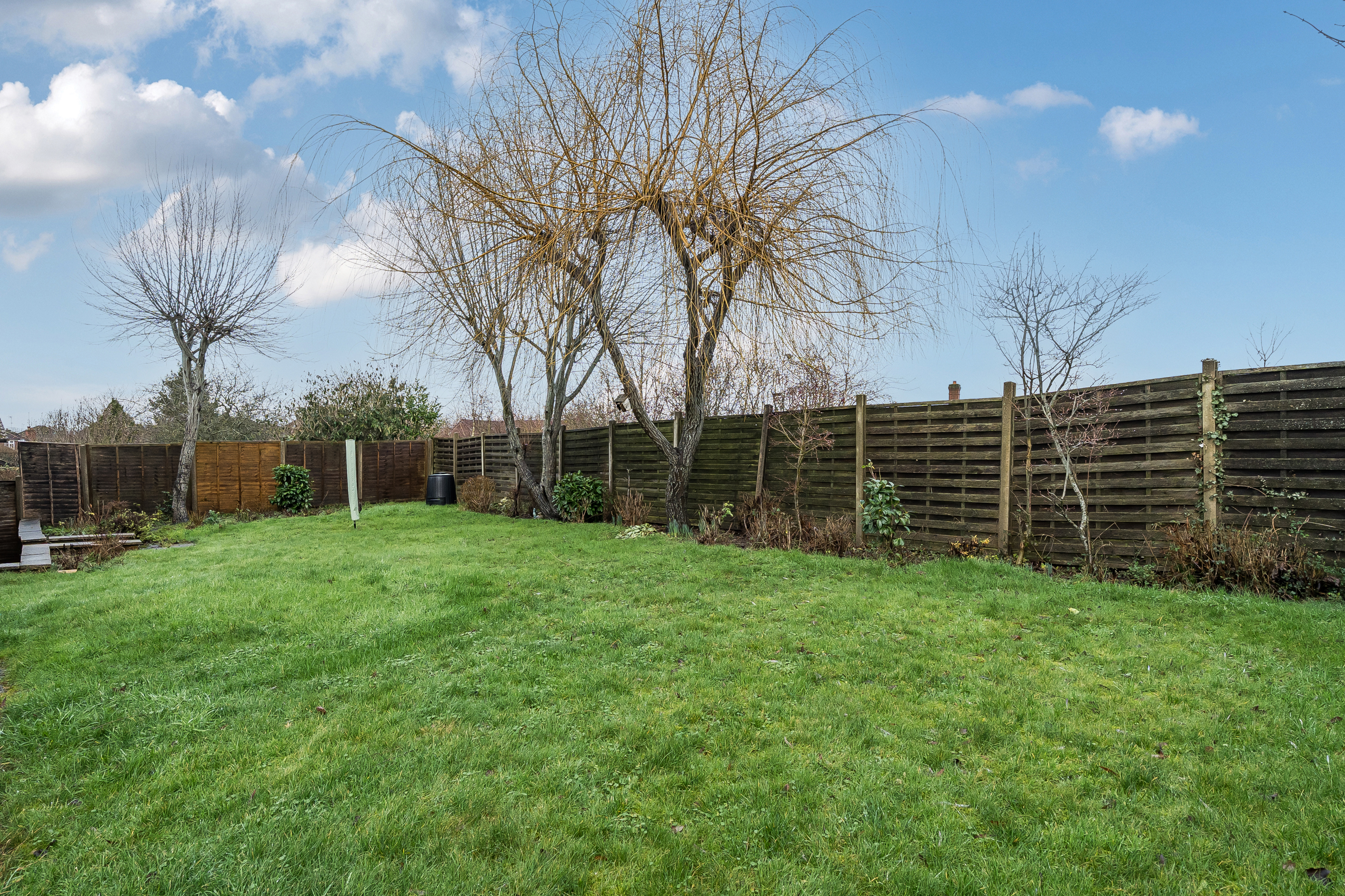 To the rear is a private, enclosed garden, mainly laid to lawn and well stocked with mature trees, shrubs and roses. A generous paved patio provides an ideal space for outdoor entertaining, with steps leading up to the garden, side access to the front, and a useful garden shed.