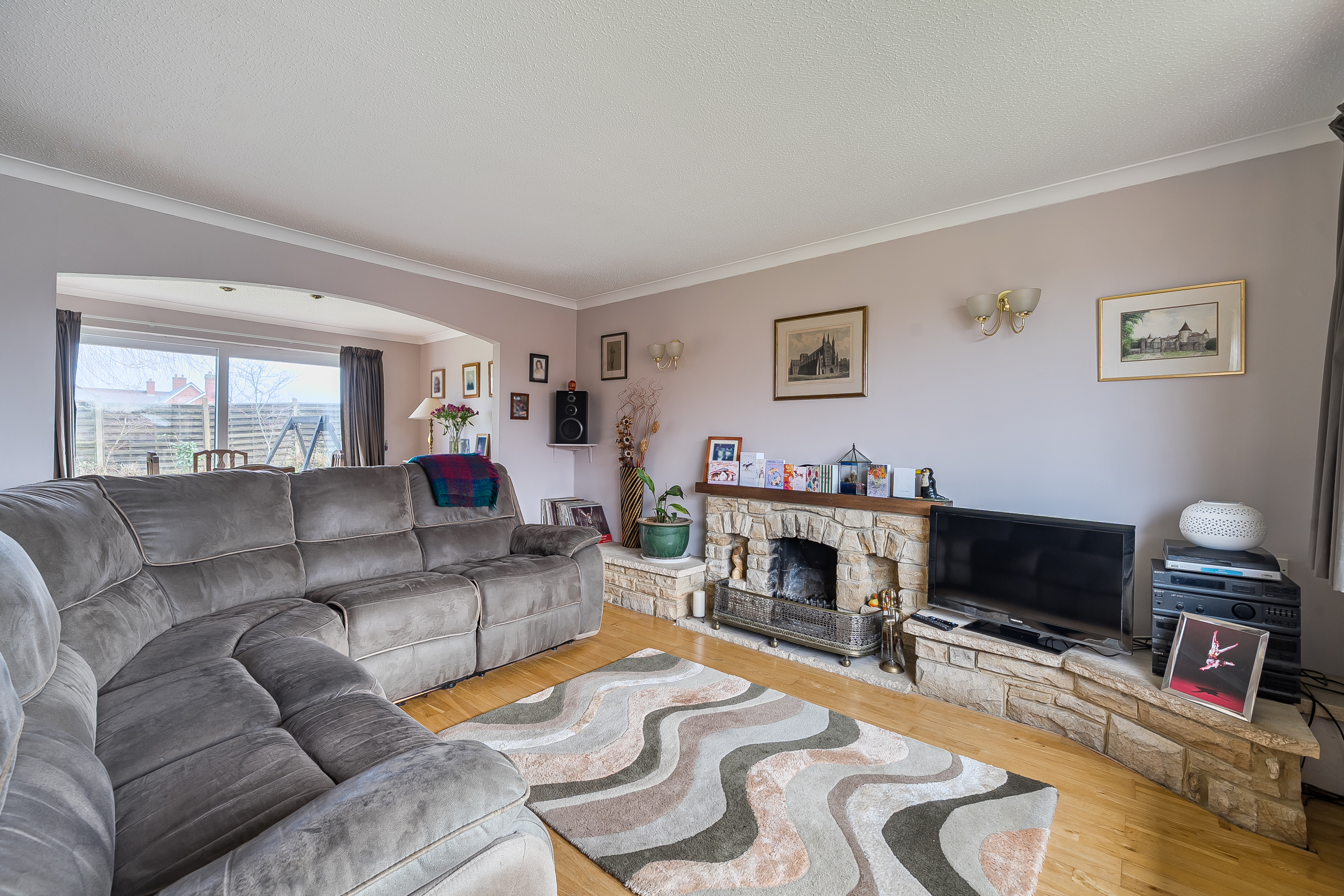 To the front, the property benefits from an attractive lawned garden and a driveway providing parking for several vehicles, leading to a double integral garage with power and lighting.