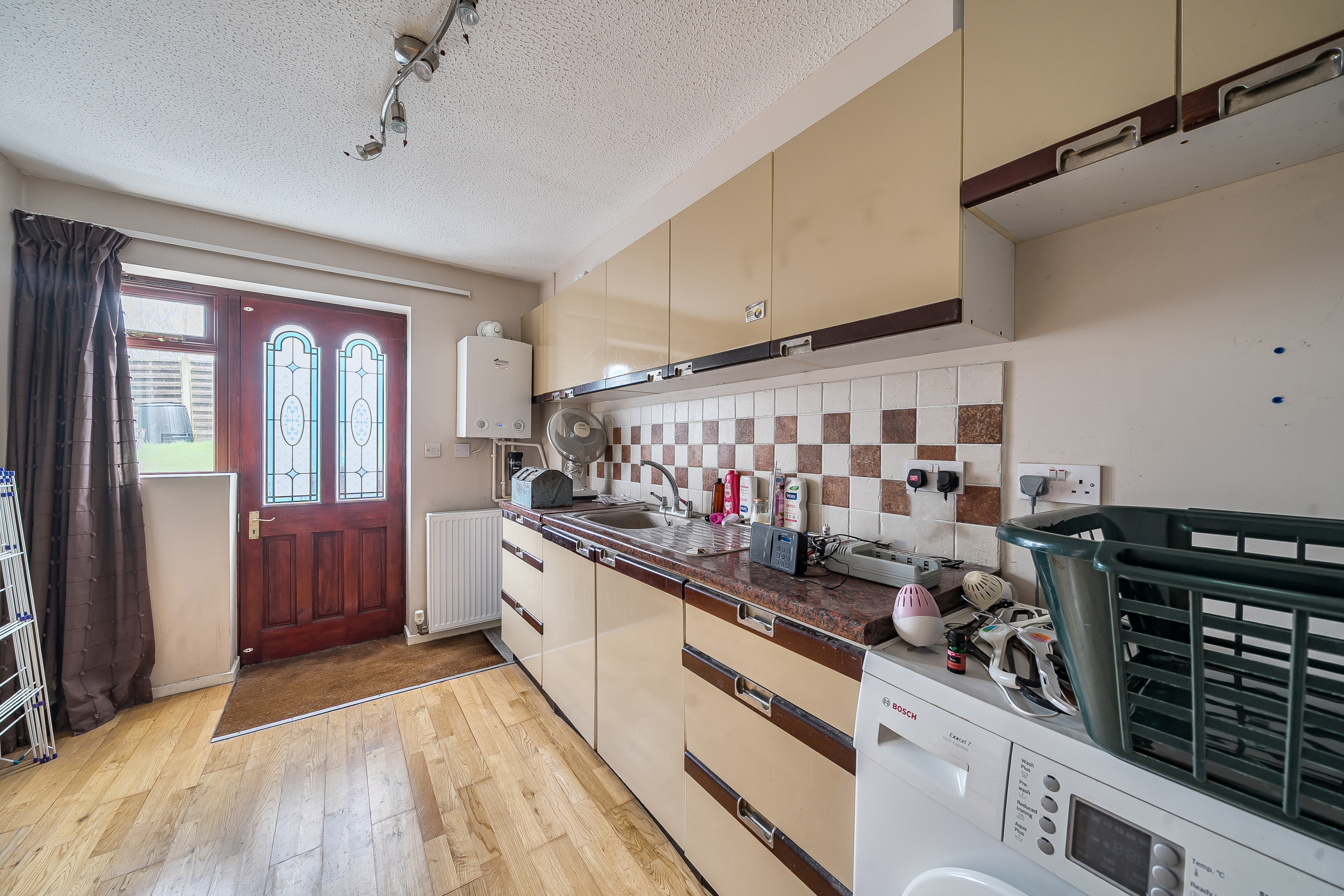 Stairs from the hallway lead down to a utility room with direct access to the garden, an additional bedroom, and internal access to the integral garage.