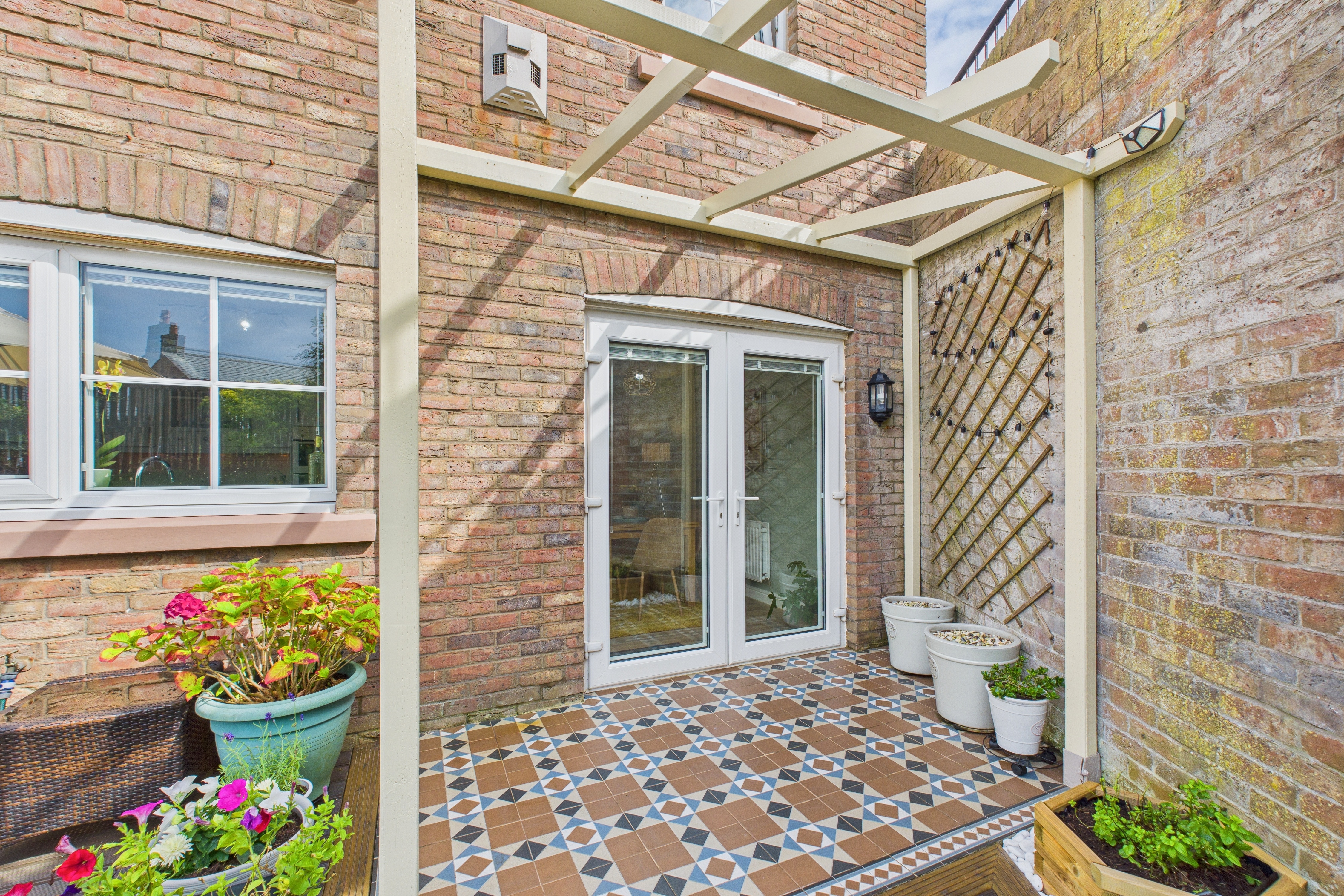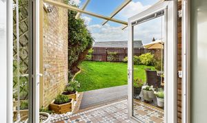 Descending to the lower floor, you'll find a spacious storage cupboard, a stunning solid oak kitchen complete with an abundance of storage and sleek integrated appliances, and a versatile second reception room that presents itself as an ideal space for either entertaining guests or unwinding in peace. French doors from the kitchen lead out to a lovely garden, featuring a charming decked area, a pergola that beckons for relaxation, a lush lawn, and an array of colourful shrubs and flowers that enhance the tranquil atmosphere.