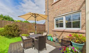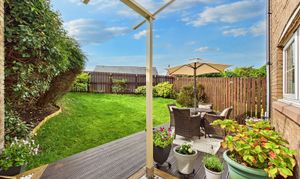 - Attractive, low maintenance garden with a decked area, pergola, lawn and a range of shrubs and flowers