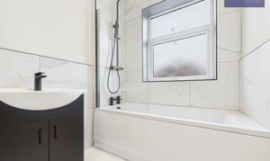 Complementing the bedrooms is the newly installed family bathroom, designed to cater to the needs of a contemporary family lifestyle. Its sleek fixtures and soothing colour palette create a spa-like atmosphere, elevating every-day routines to moments of relaxation and rejuvenation.