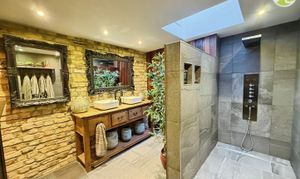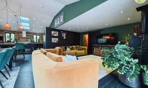 The heart of this home is the stunning extension that has transformed the property into a true oasis of tranquillity. Meticulously improved throughout, every detail has been carefully crafted to exude luxury and comfort. The high-end fitted kitchen is a culinary delight, featuring a striking feature island and a professional-grade range cooker that is sure to delight any aspiring chef. The open plan layout of the living room/ kitchen accompanied by the cosy log burner creates the perfect ambience for the whole family to enjoy.