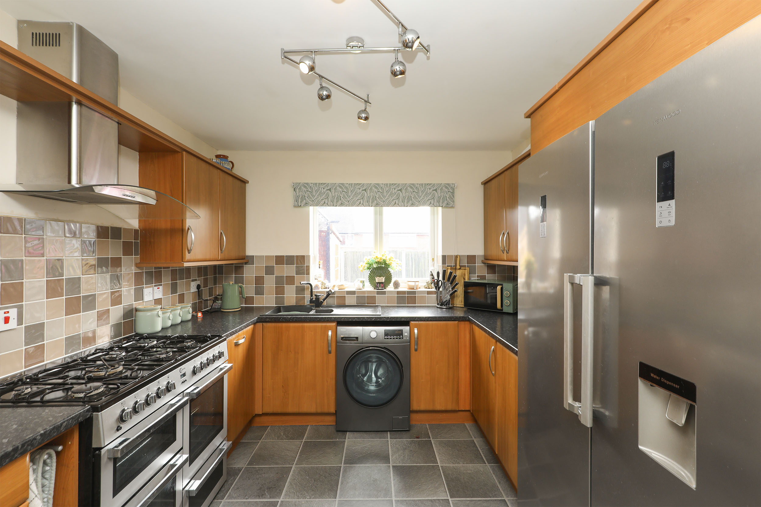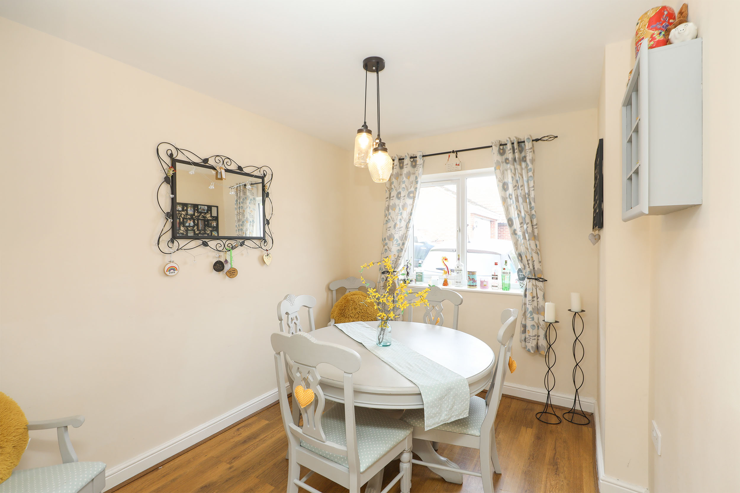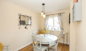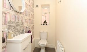 The property opens with a welcoming entrance hall, setting the tone for the space and quality found throughout. The ground floor is designed with both practicality and modern living in mind, featuring a contemporary fitted kitchen complete with a range of integrated appliances. A generously sized living room provides a comfortable and inviting space, enhanced by doors opening onto the rear garden. A separate, light-filled dining room offers the perfect setting for formal meals and entertaining, while a convenient ground floor W.C. adds to the home’s everyday functionality.