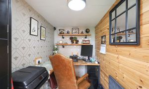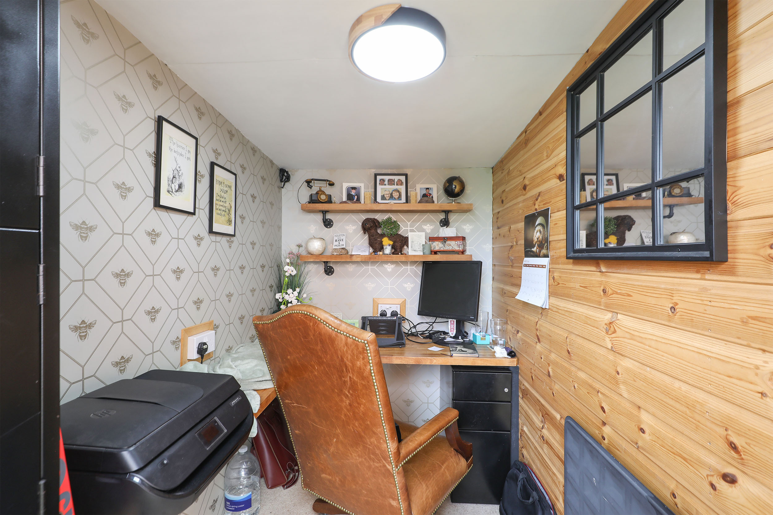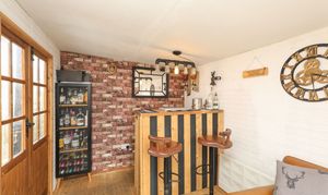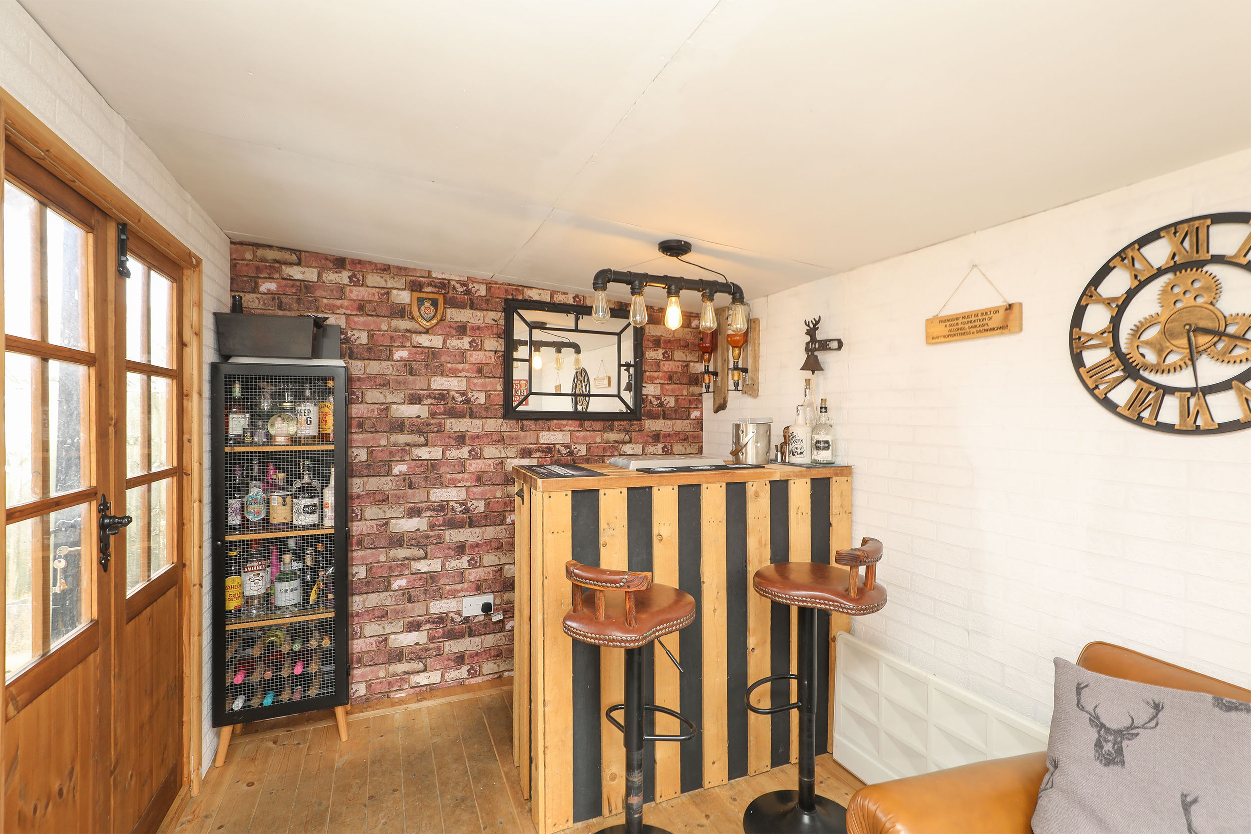 Externally, the home continues to impress with an enclosed and private rear garden, perfect for relaxing and entertaining. A spacious patio area provides the ideal setting for outdoor dining, complemented by a manageable lawn. A standout feature is the superb summerhouse, cleverly arranged into two distinct rooms, offering a dedicated home office space alongside an impressive bar and entertaining area.