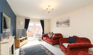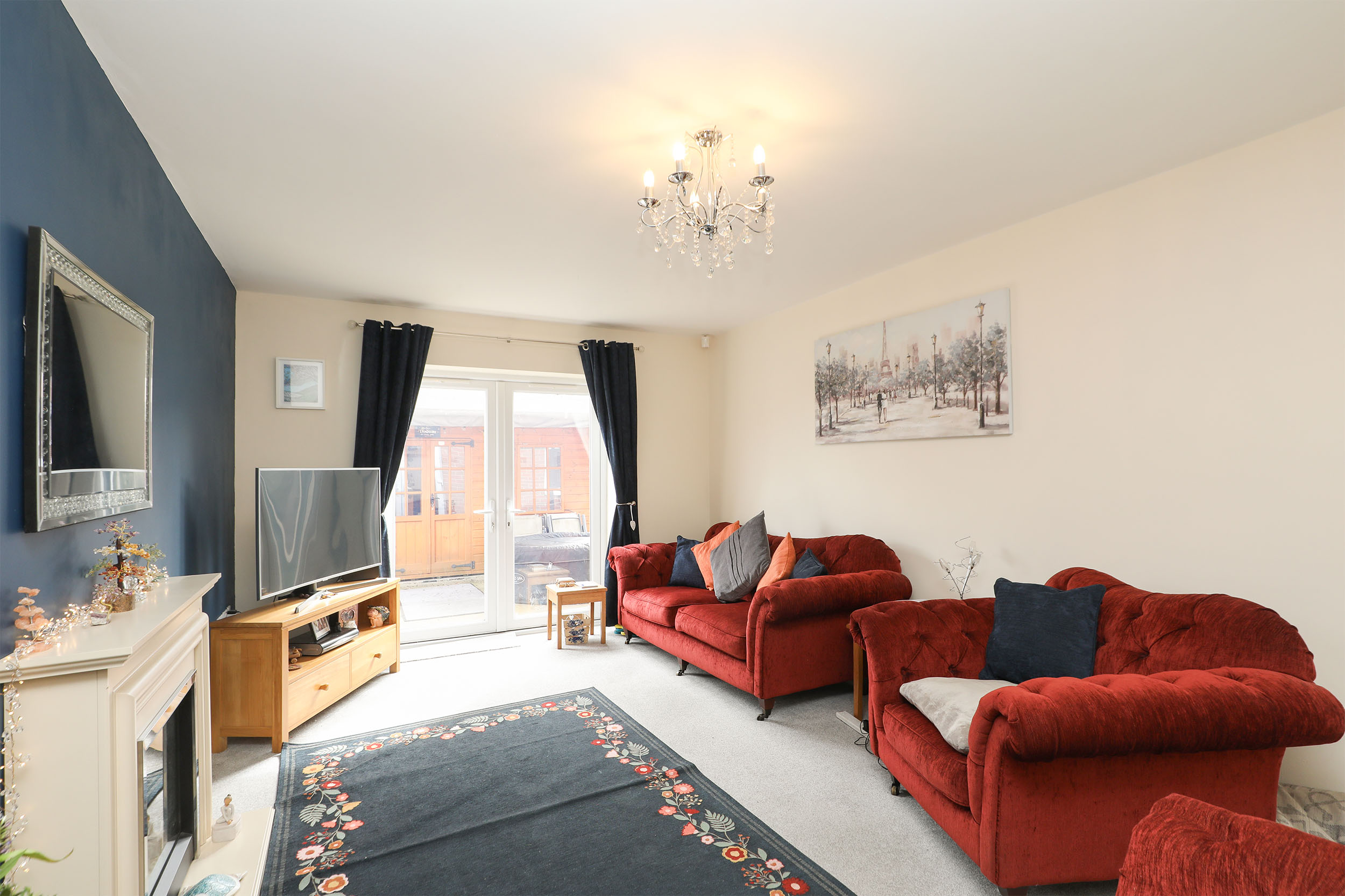 - A Generously-Sized Living Room With Doors Opening Onto The Rear