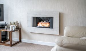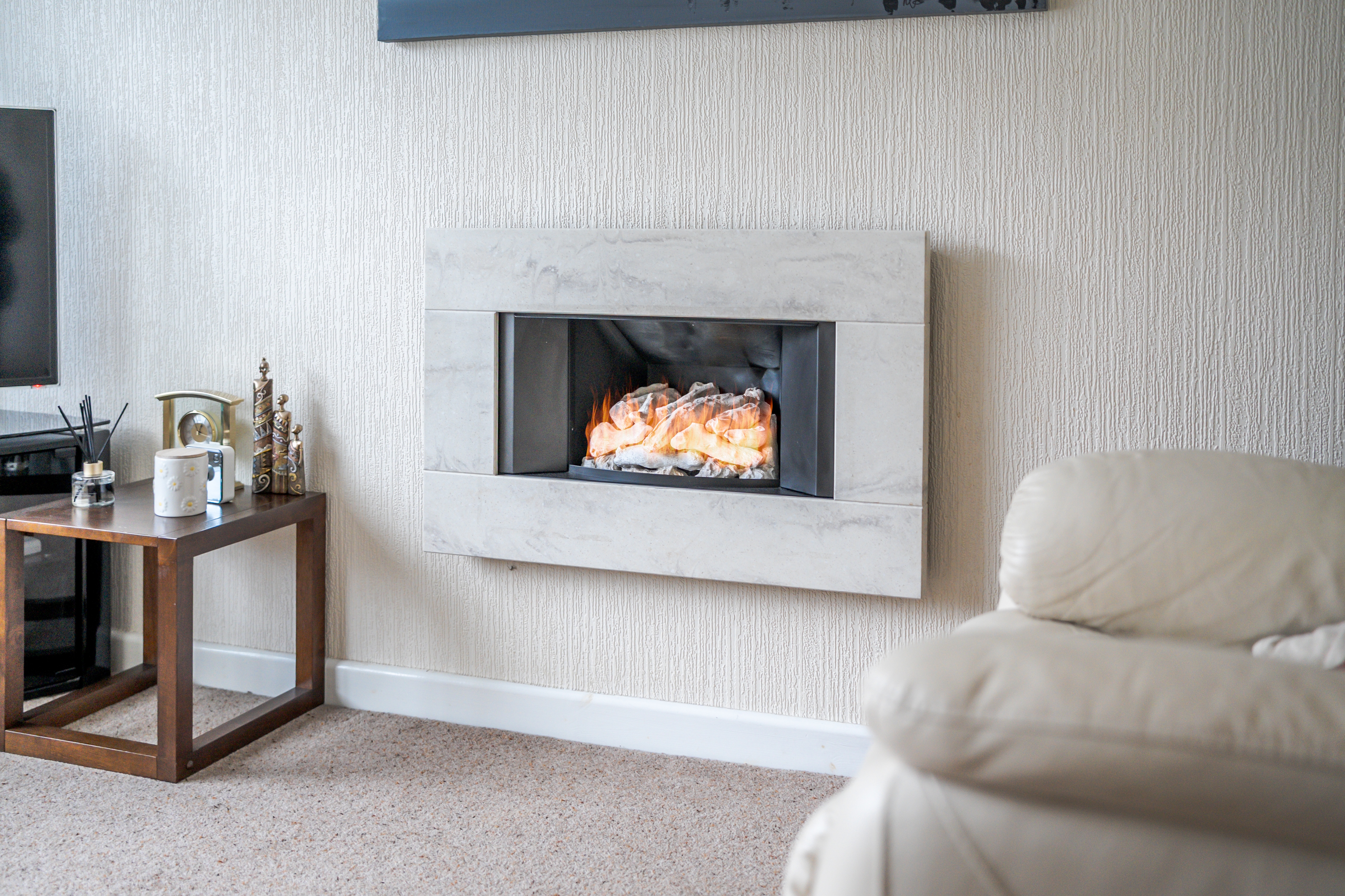 - BRIGHT LIVING ROOM WITH GAS FIRE AND DECORATIVE CORNICING